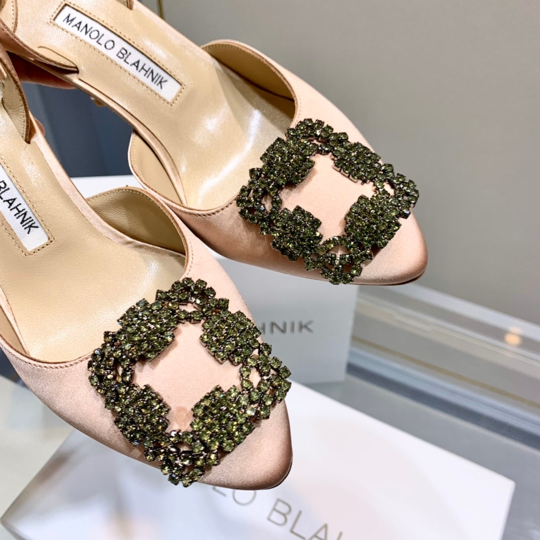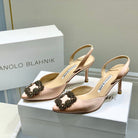 Manolo Buckle Slingback 7cm Light Pink Silk 208031