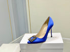 Manolo Diamond Buckle Pumps 10cm Navy Blue Silk 574252