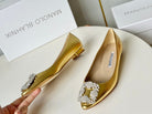 Manolo Diamond Buckle Pumps Gold Mirror Cowhide 451182