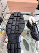 Miu Short Wool Boots Plain Dark Charcoal Open-Hemmed Cowhide