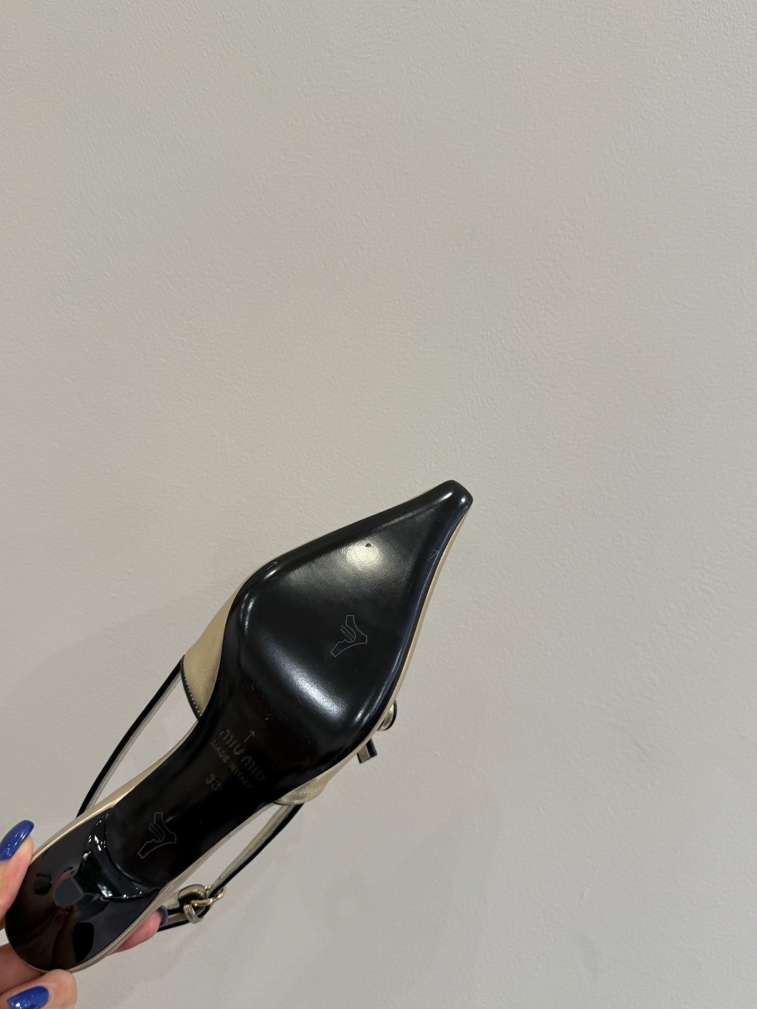 Miu slingback pump metallic gold leather