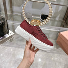 Miu Sneaker with Logo Maroon Red Demin Fabric 235311