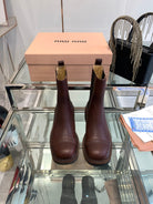 Miu Boots Brown Earth Vegetable Blended Cowhide