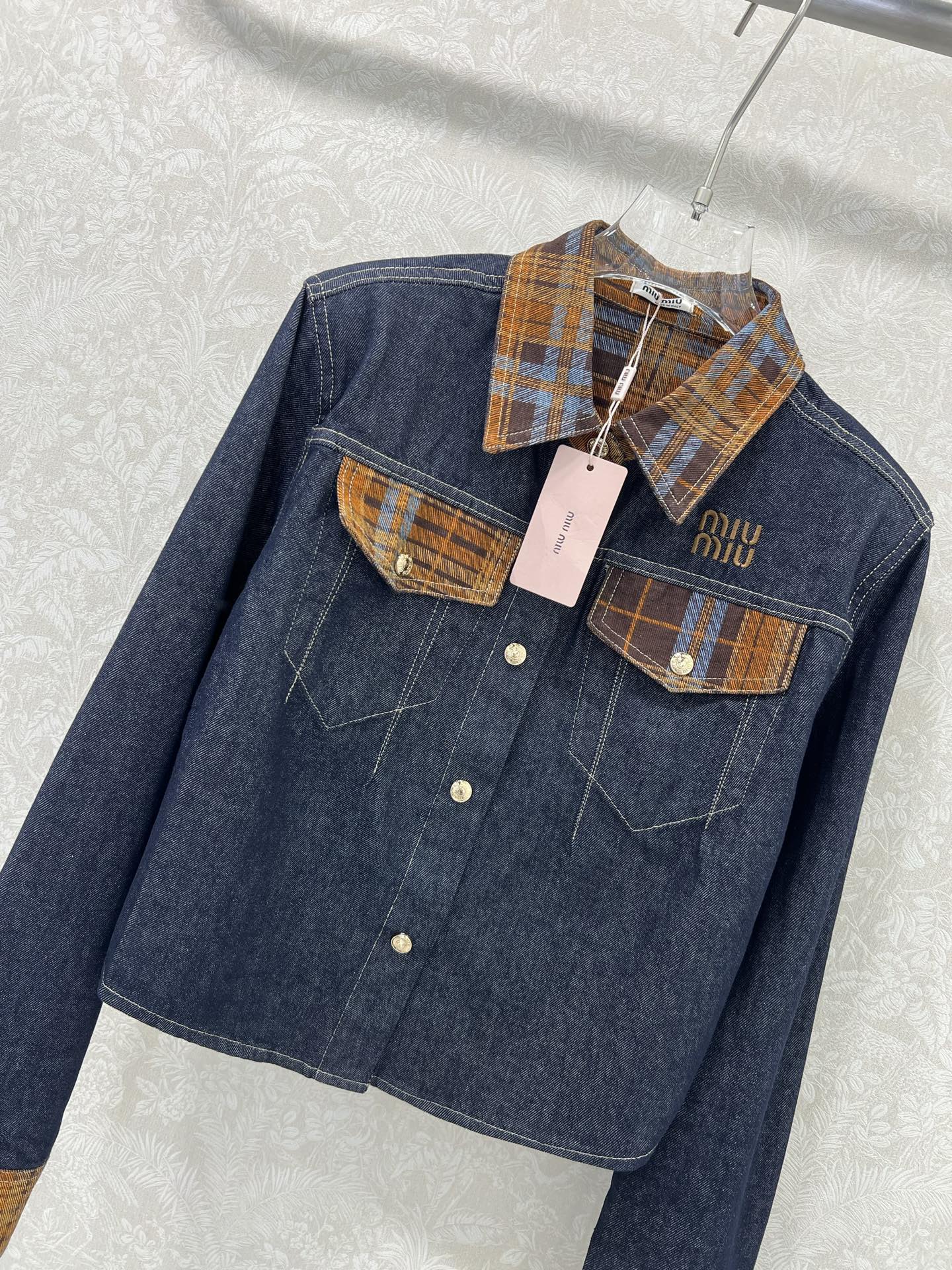 Miu Miu 25 Classic Plaid Pocket Denim Short Jacket