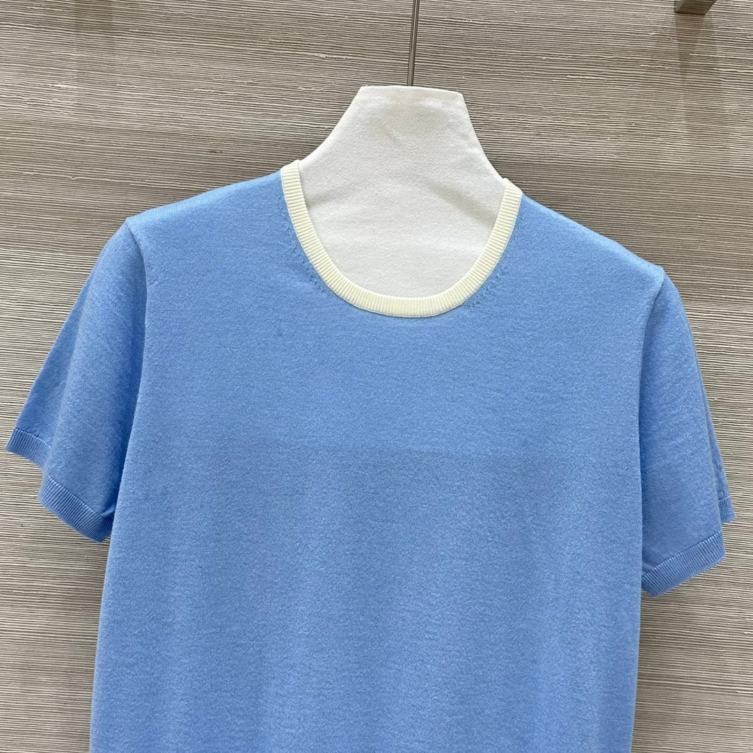Miu Miu 25 Short-sleeve Top Blue Wool