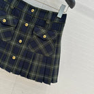 Miu Miu Plaid Pleated Skirt Green Blue Wool