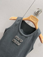 Rhinestone beaded logo letter logo vest