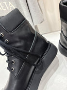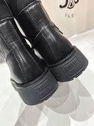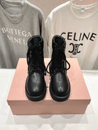 Miu Lace-Up Boots Black Waxed Calfskin
