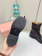Miu Leather Laced Booties Black Cowhide
