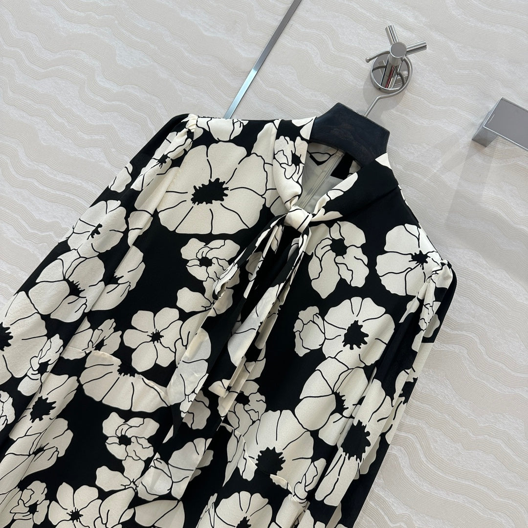 Celine Flower Dress Black mix White Silk