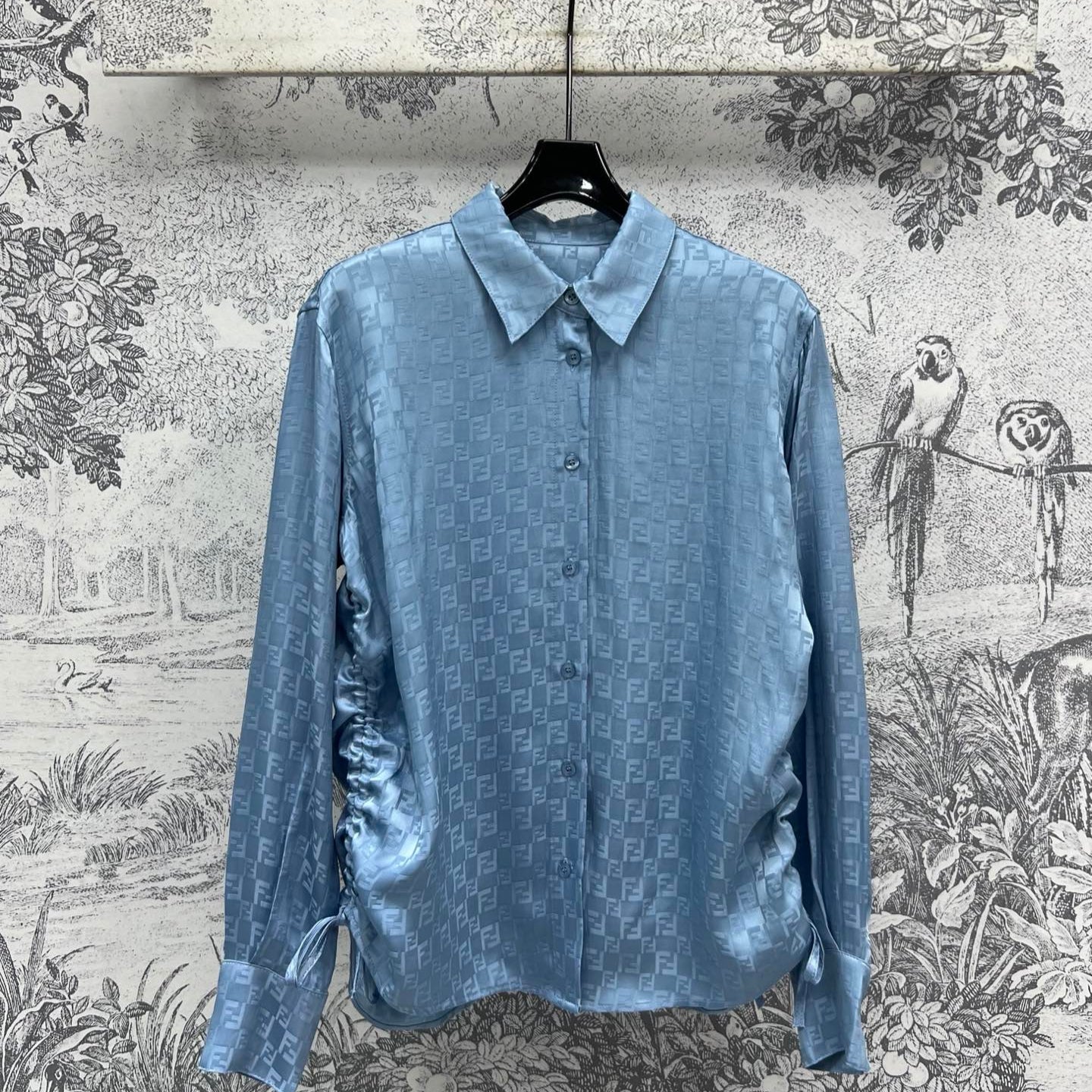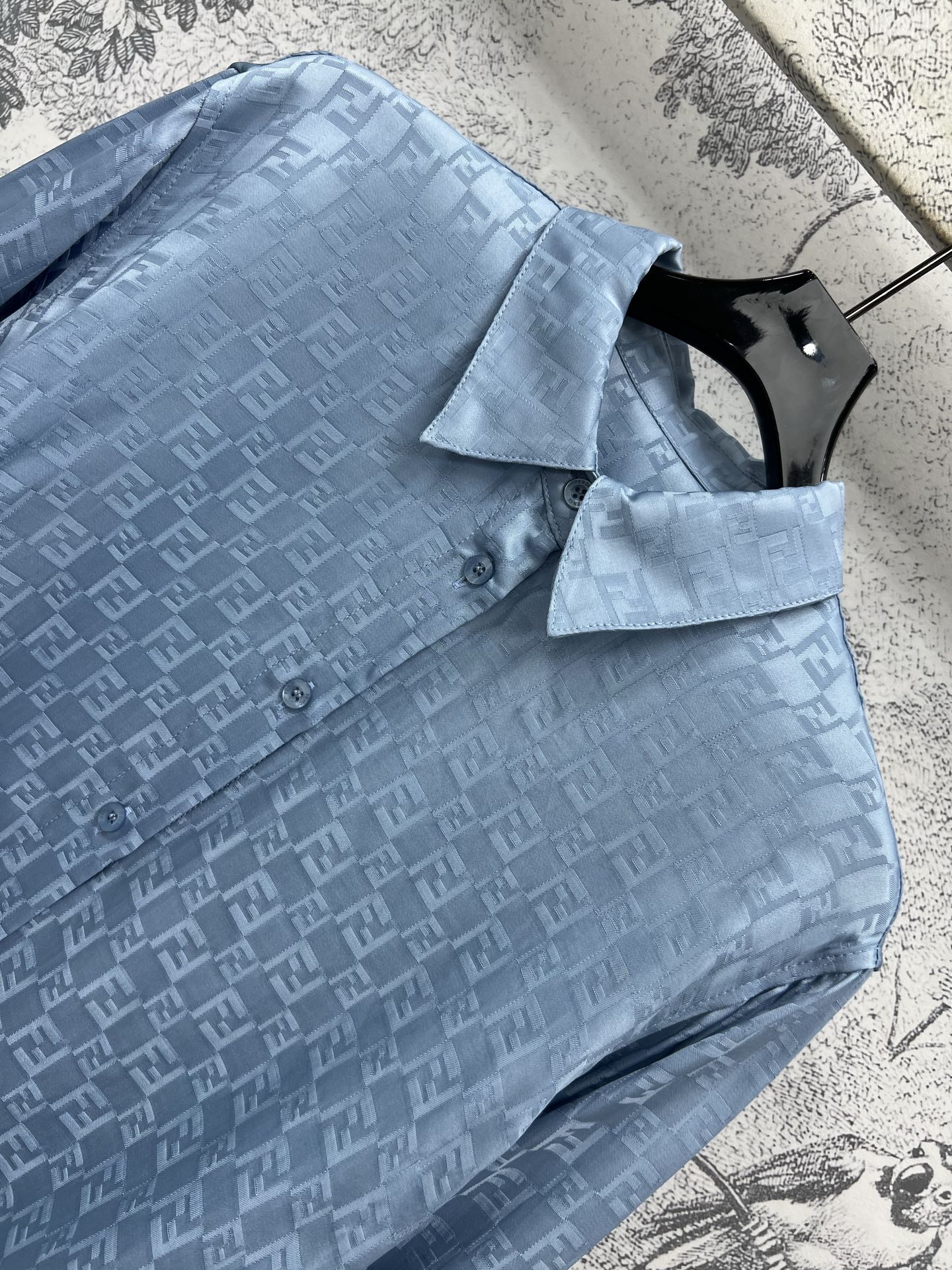 Fendi 25 Double F Shirt Blue Viscose Polyester