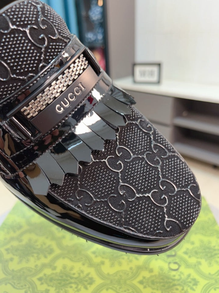 GG Men's Loafer Black Canvas Patent Leather 330406