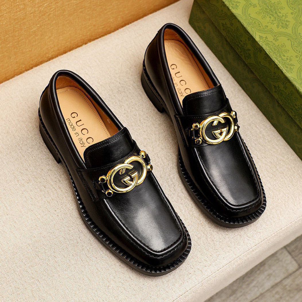 GG Men's Loafer Black GG Gold Cowhide 736977