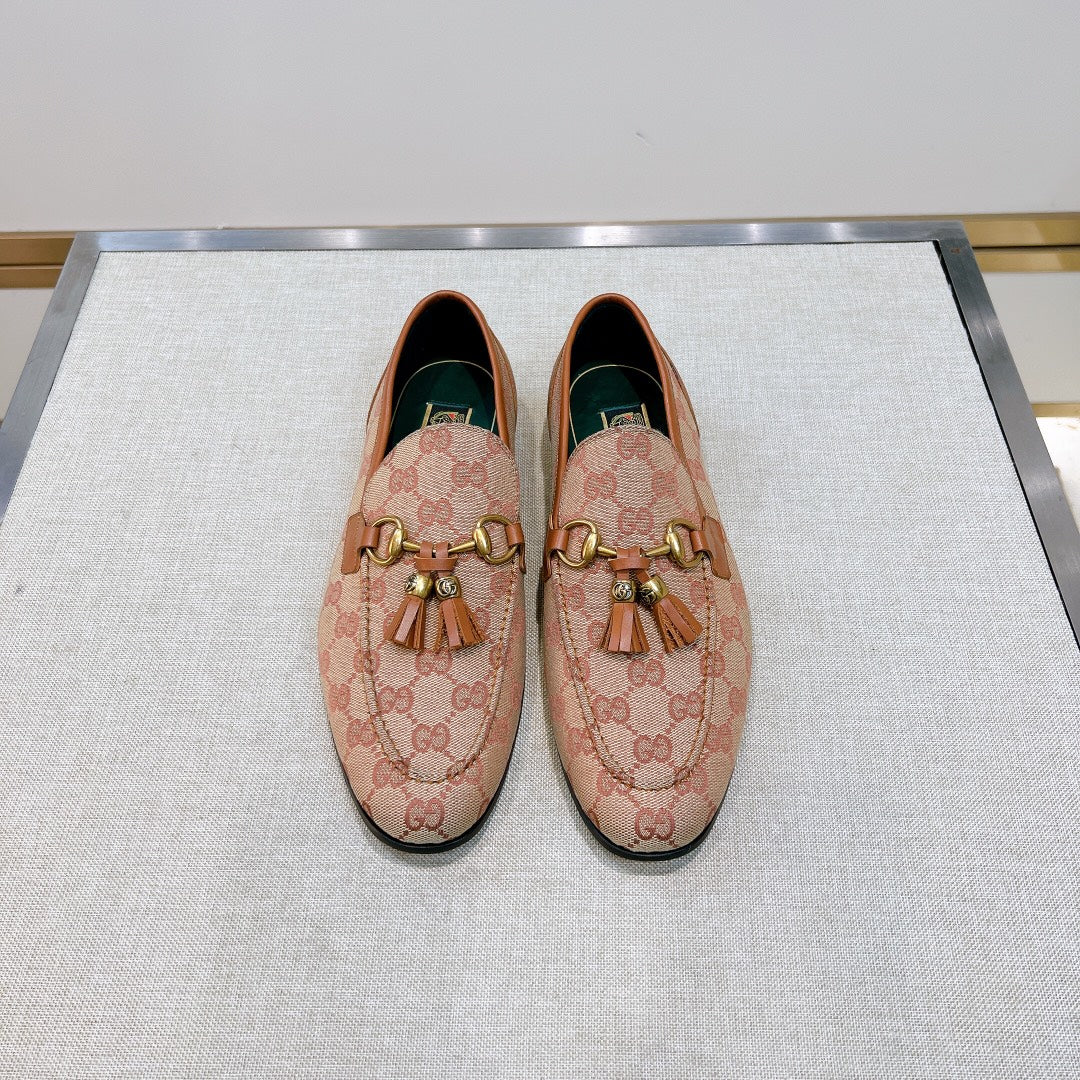 GG Men's Tassel Loafer Pink Canvas Calfskin 361365