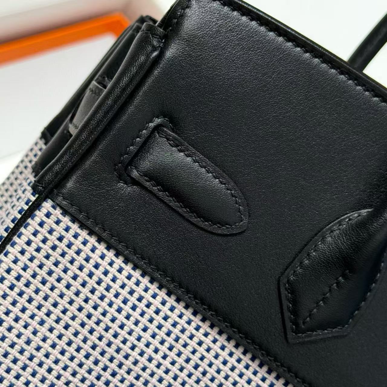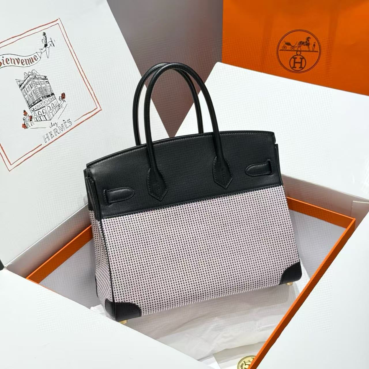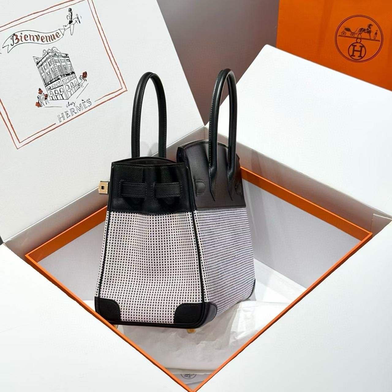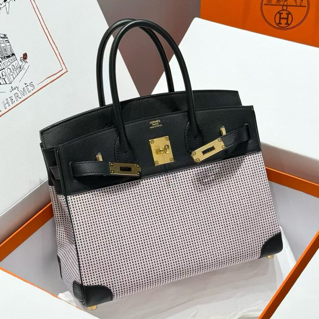 HM 2025 Birkin 30cm Black White Swift Cowhide Canvas Fabric With Waffle Panda