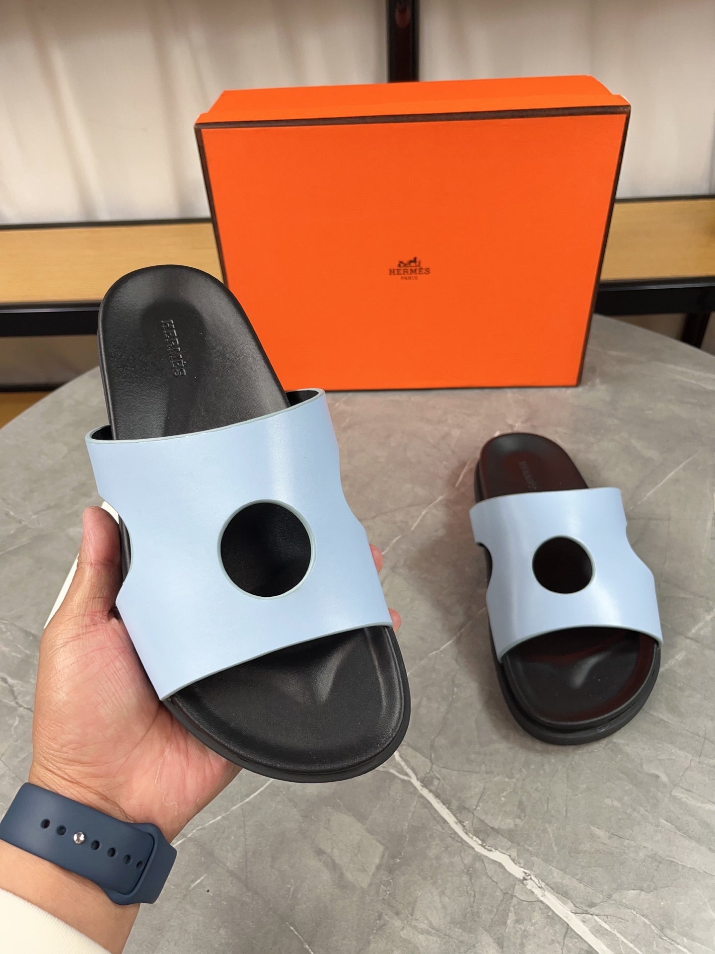 HM Men's Edith Slide Blue Sheepskin 567375