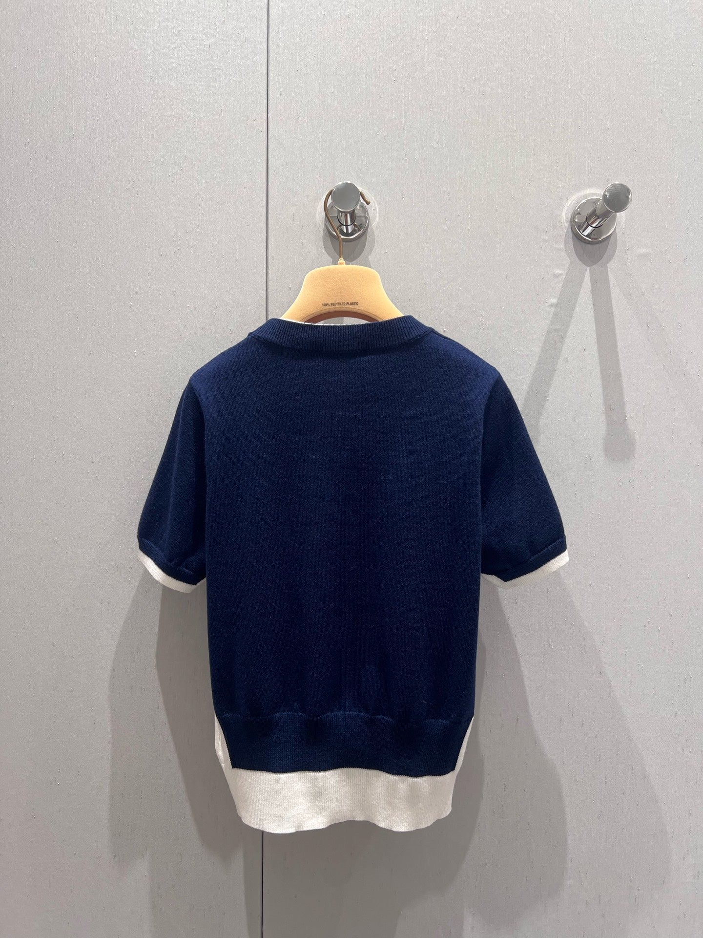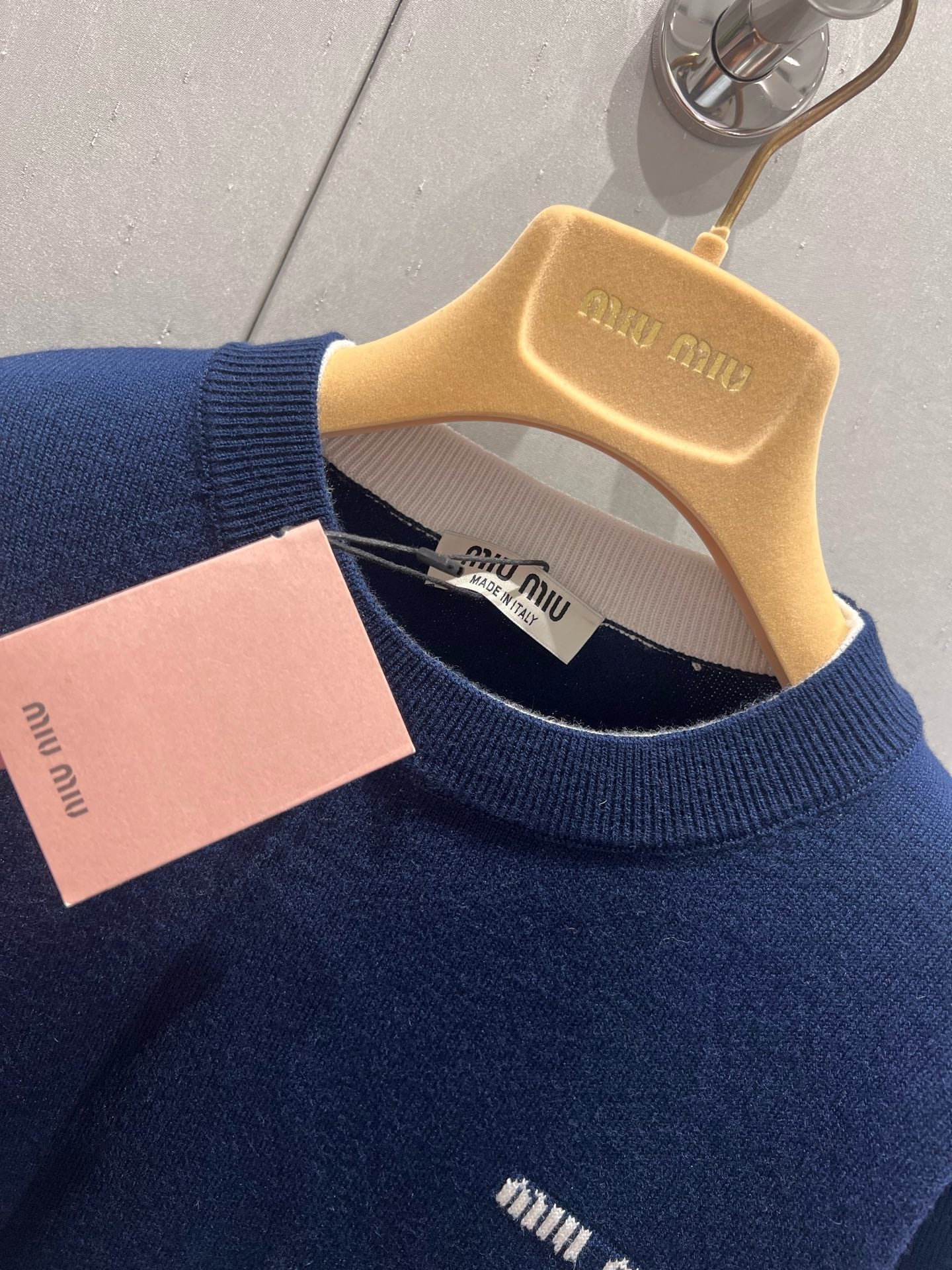 Miu Miu 25 Two-piece Knitted Short-sleeved Top Blue White Wool 210549