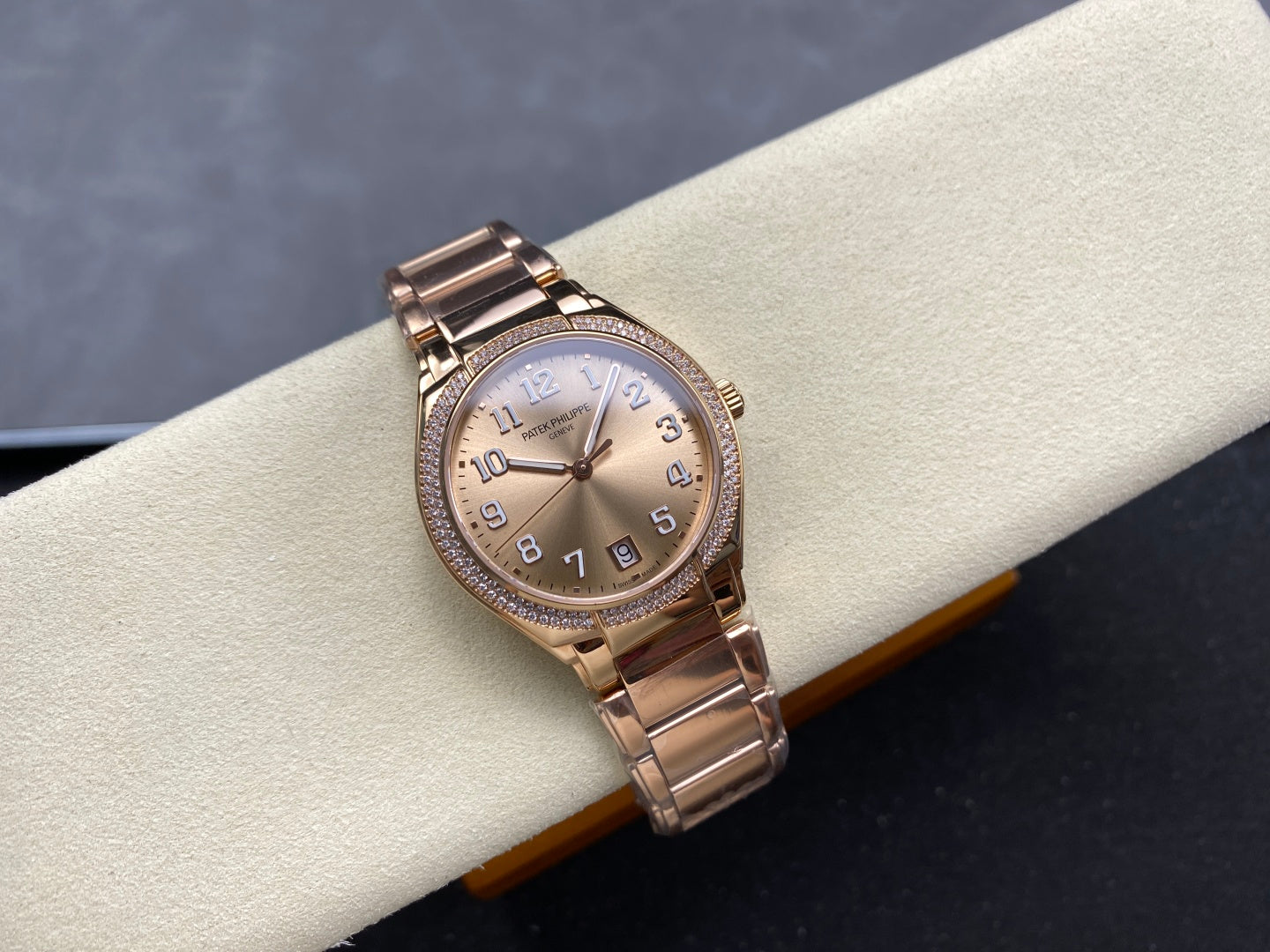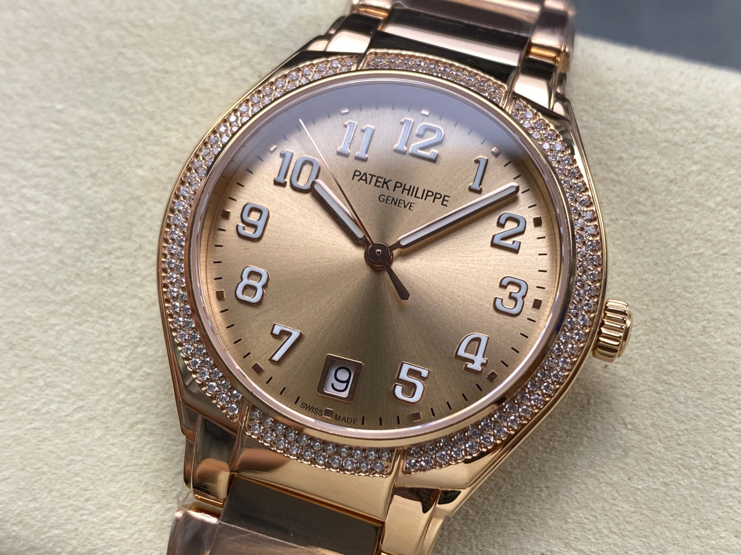 PATEK Twenty-Four 36mm Diamond Pink Gold Champagne Dial