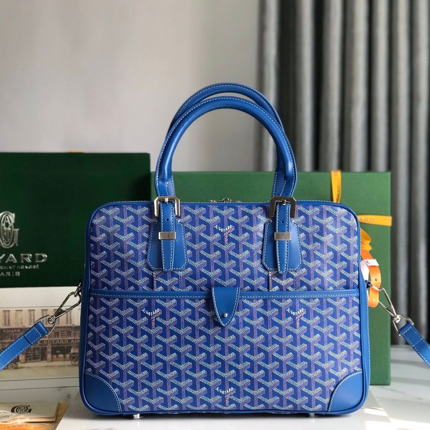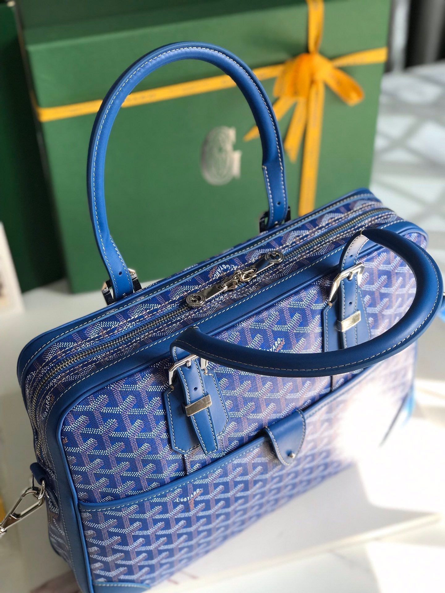 AMBASSADE DOCUMENT CASE 35 IN SAPPHIRE BLUE GOYARDINE CANVAS