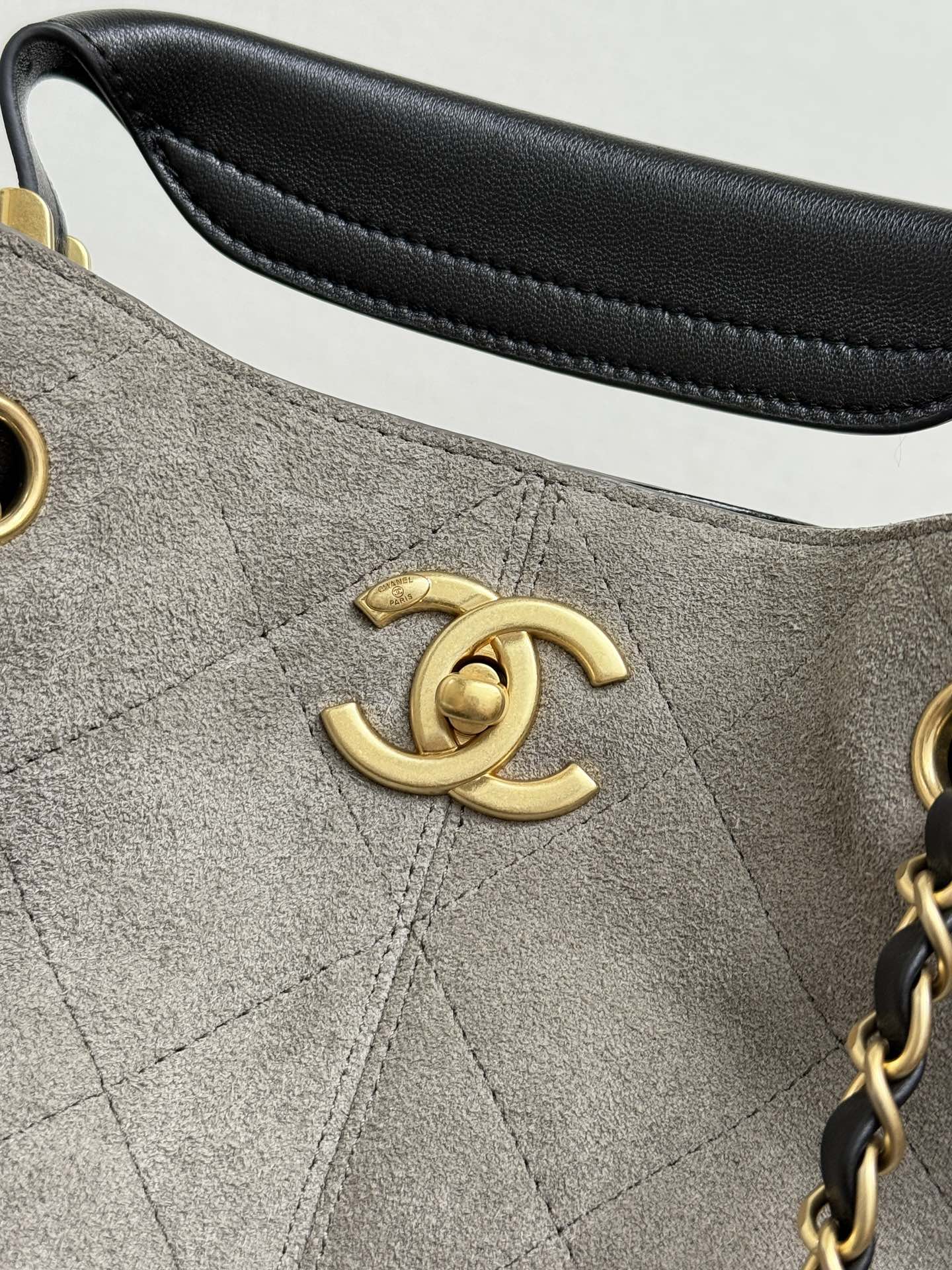 CC 25A Tote 28cm Grey Suede Black Calfskin