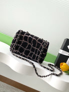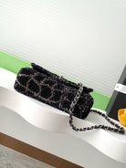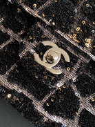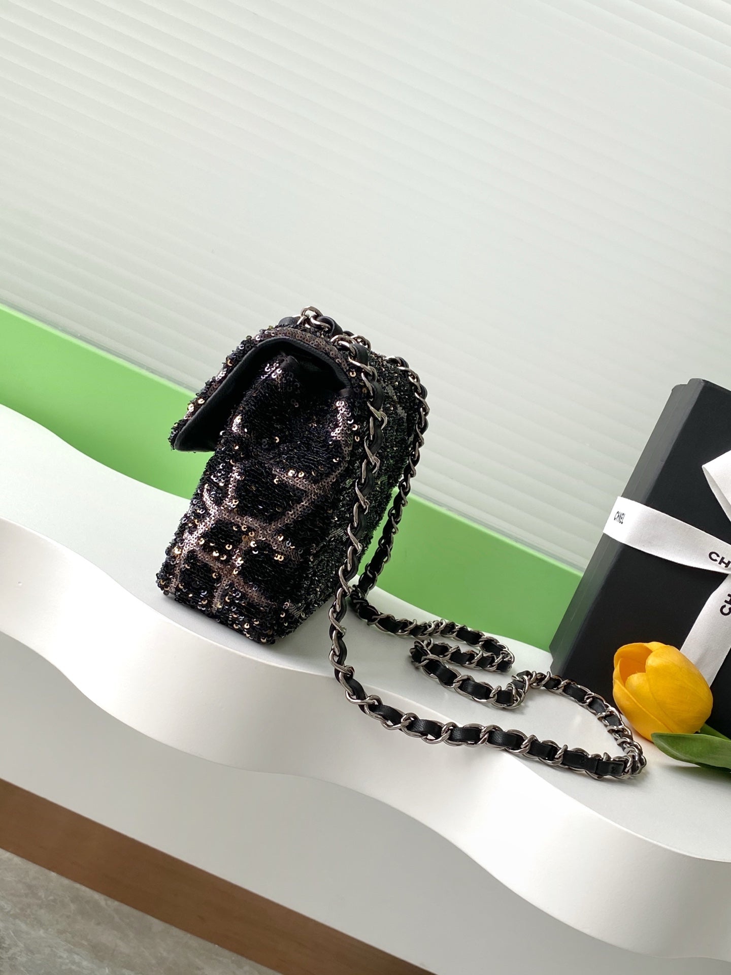 cc 25S Flap Bag 21cm Black Silver Sequin Calfskin