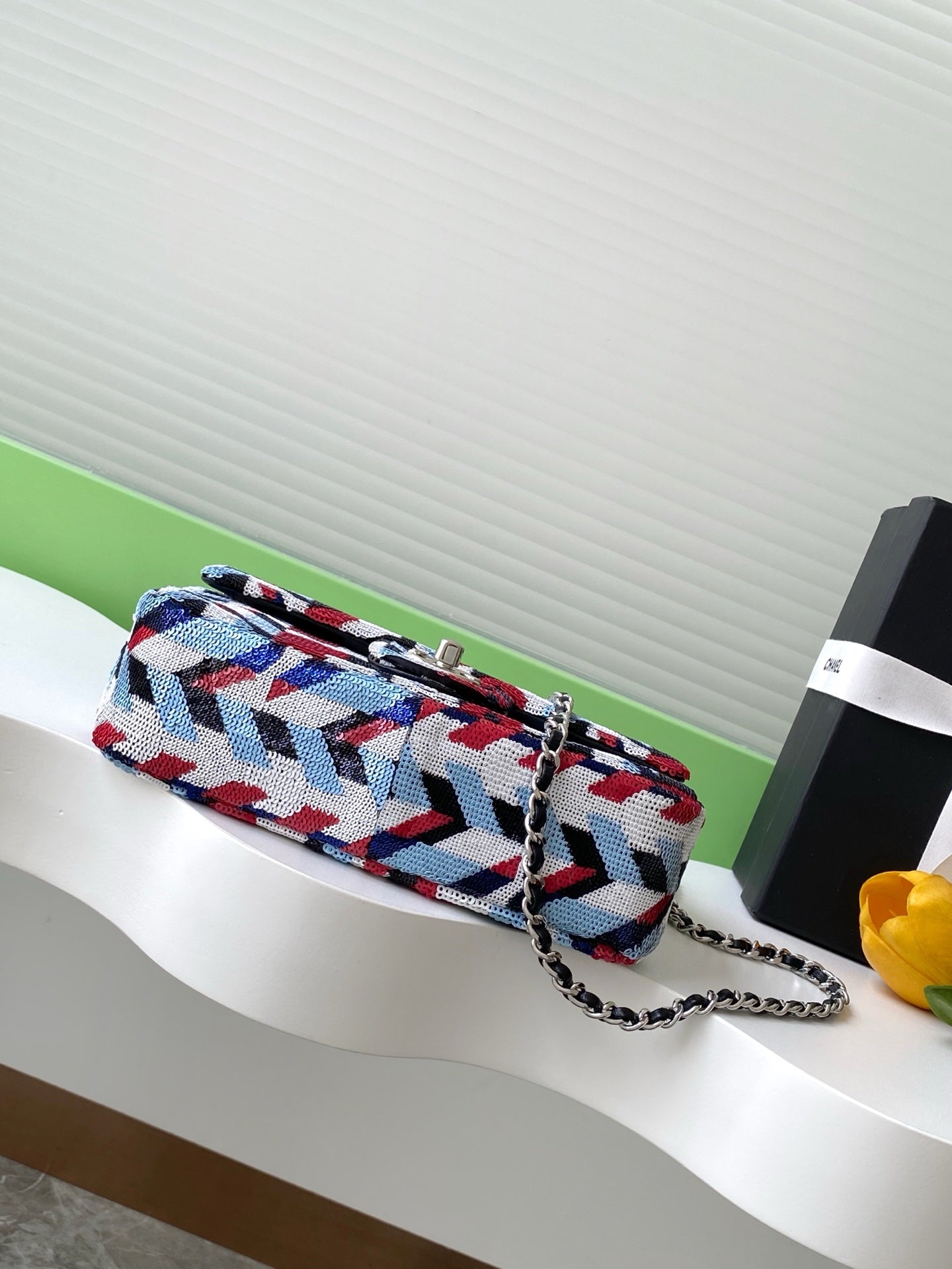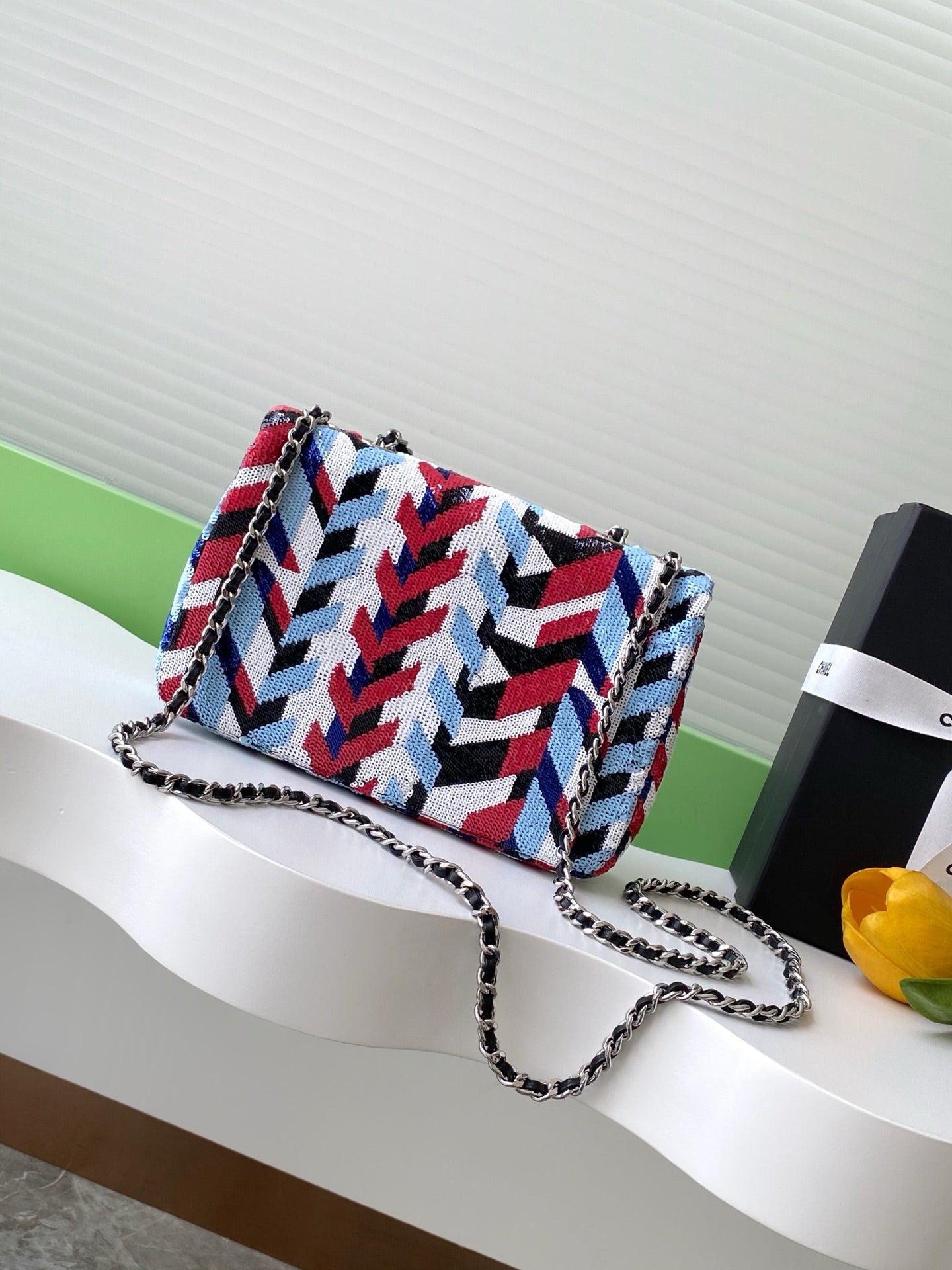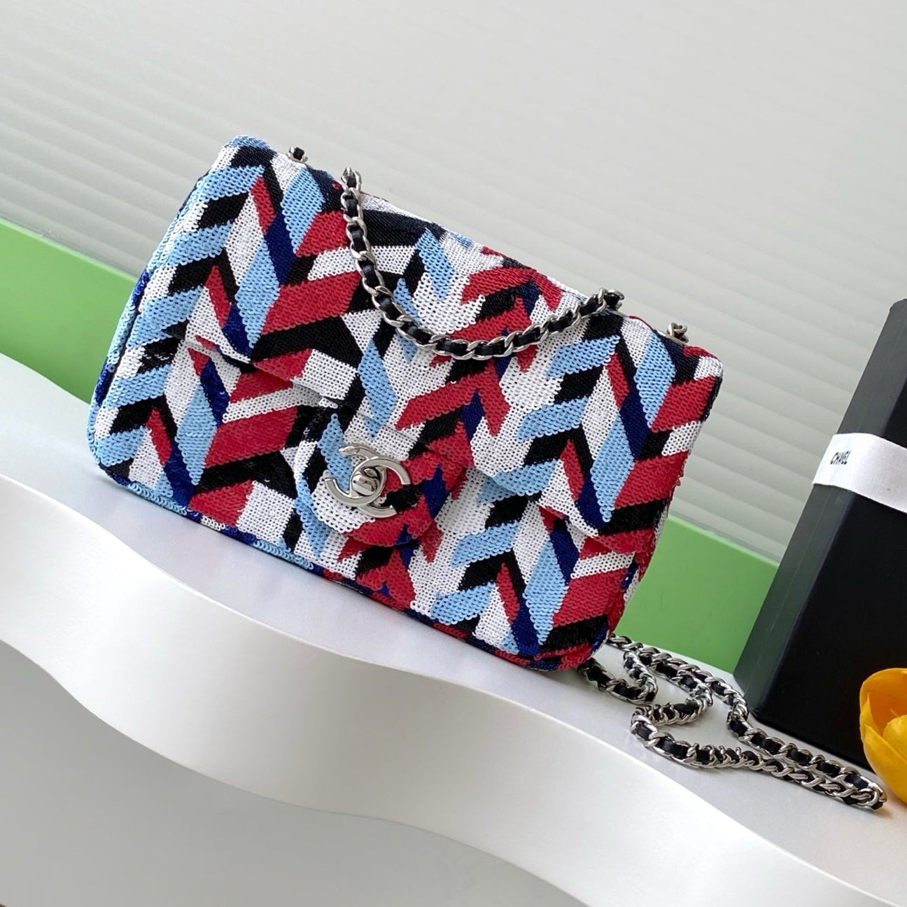 cc 25S Flap Bag 21cm Multicolor Chevron Sequin