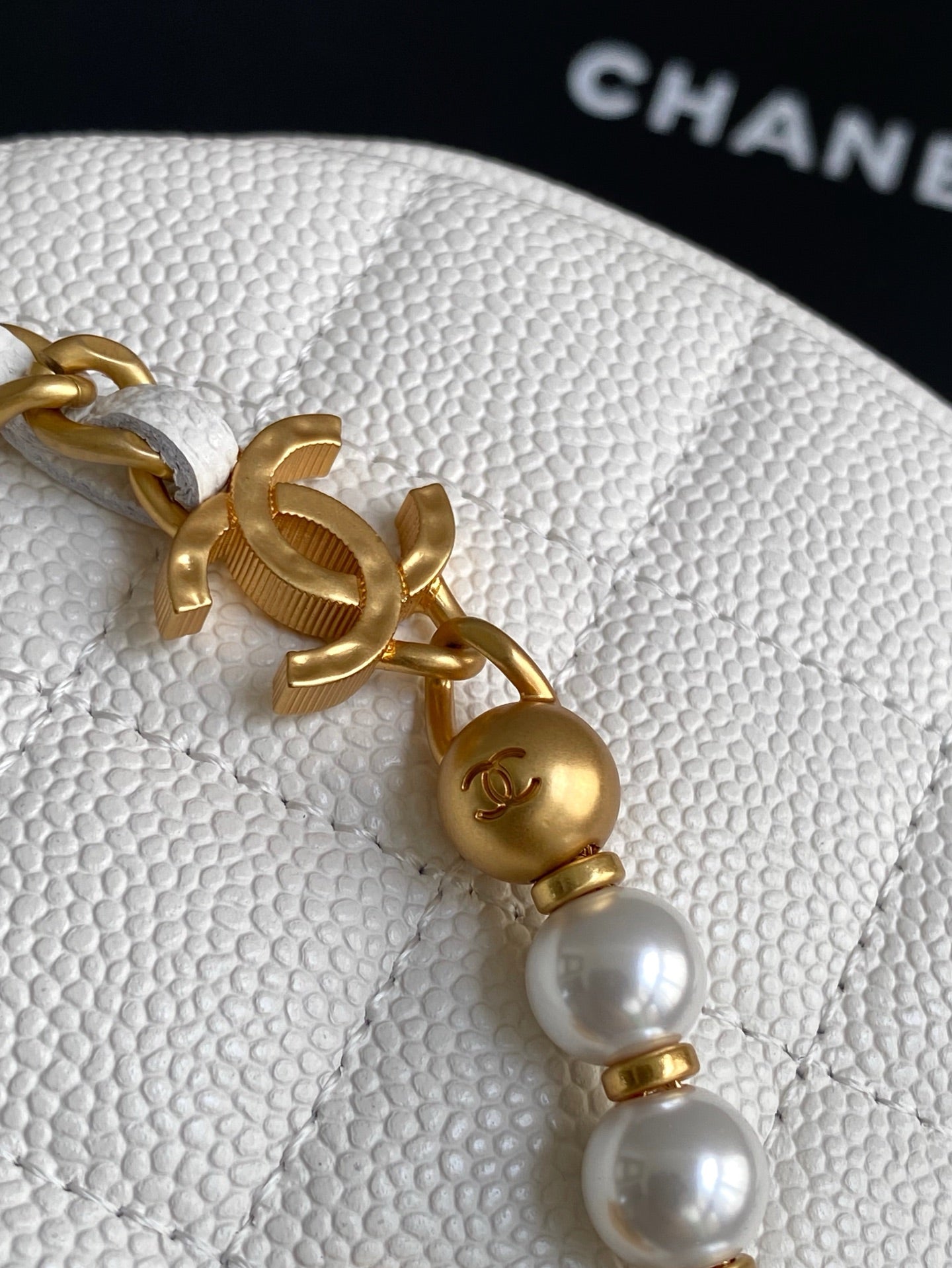 CC 25S Pouch Bag 17cm White Grained Calfskin Pearl