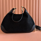 Gucci Body Double Lock Handbag Black Velvet Embossed Leather 248133