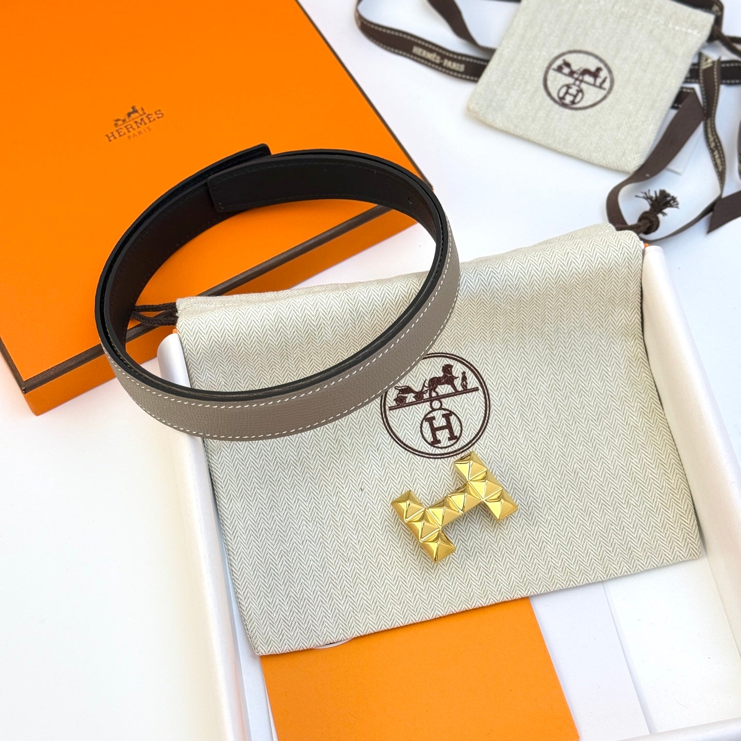 HM Infini Reversible Belt 24mm Gray Epsom Gold Buckle