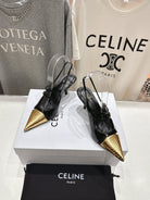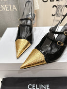 Celine 25C Judy Double Strap Mary Jane Slingback Black mix Gold Sheepskin 236775