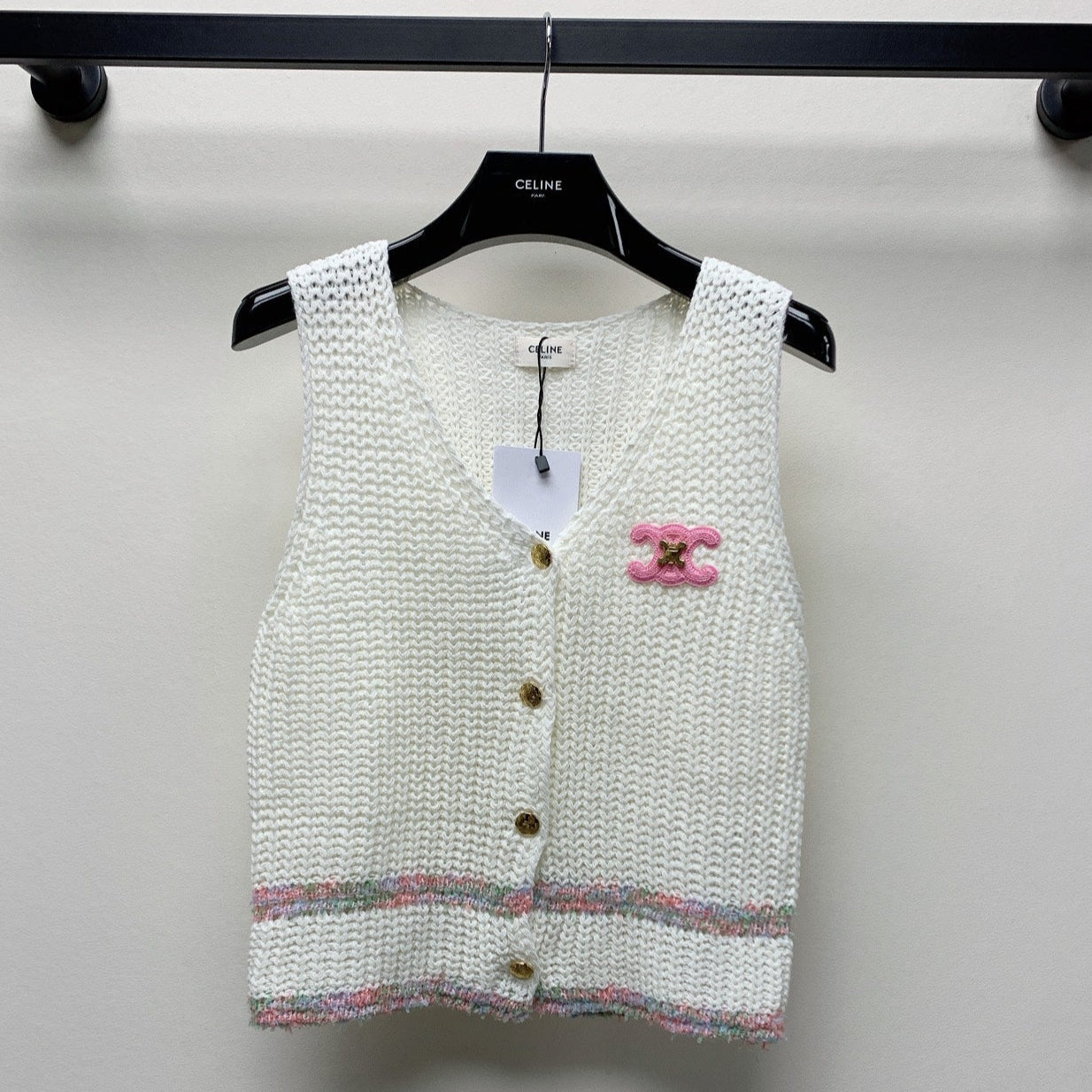 Celine 25 Knitted Vest White Wool Polyester 281498