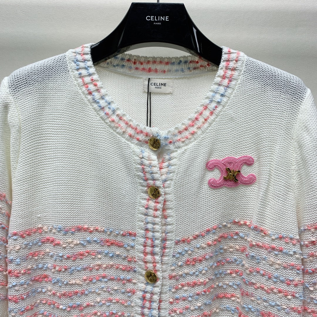 Celine 25 Striped Cardigan White Wool Polyester 281502