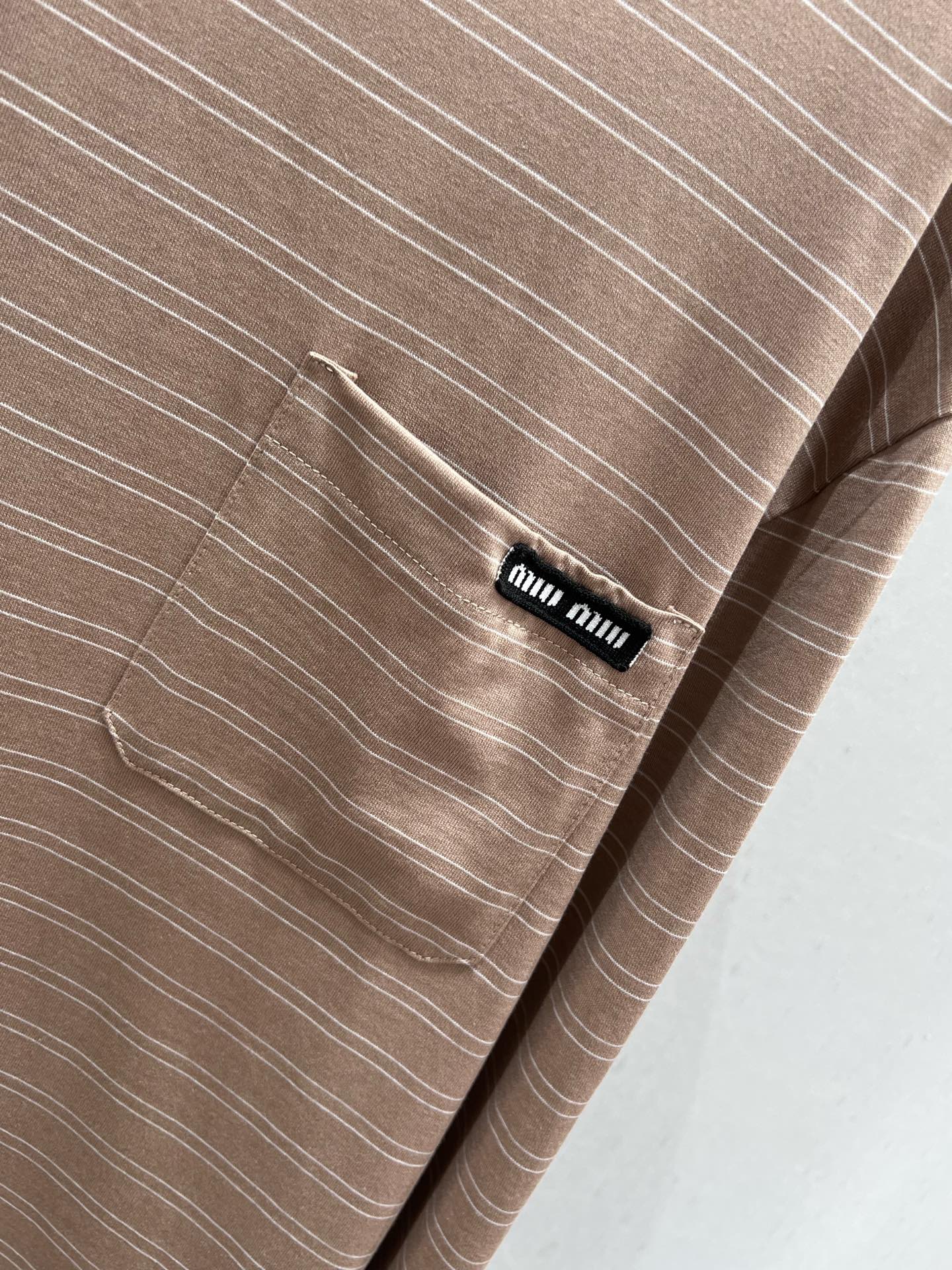 Miu Miu 25 Striped Long-sleeved T-shirt Brown Cotton 211207