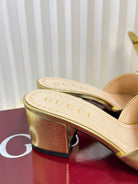 GC 25 Interlocking G Heeled Sandal Gold Patent Leather 294639