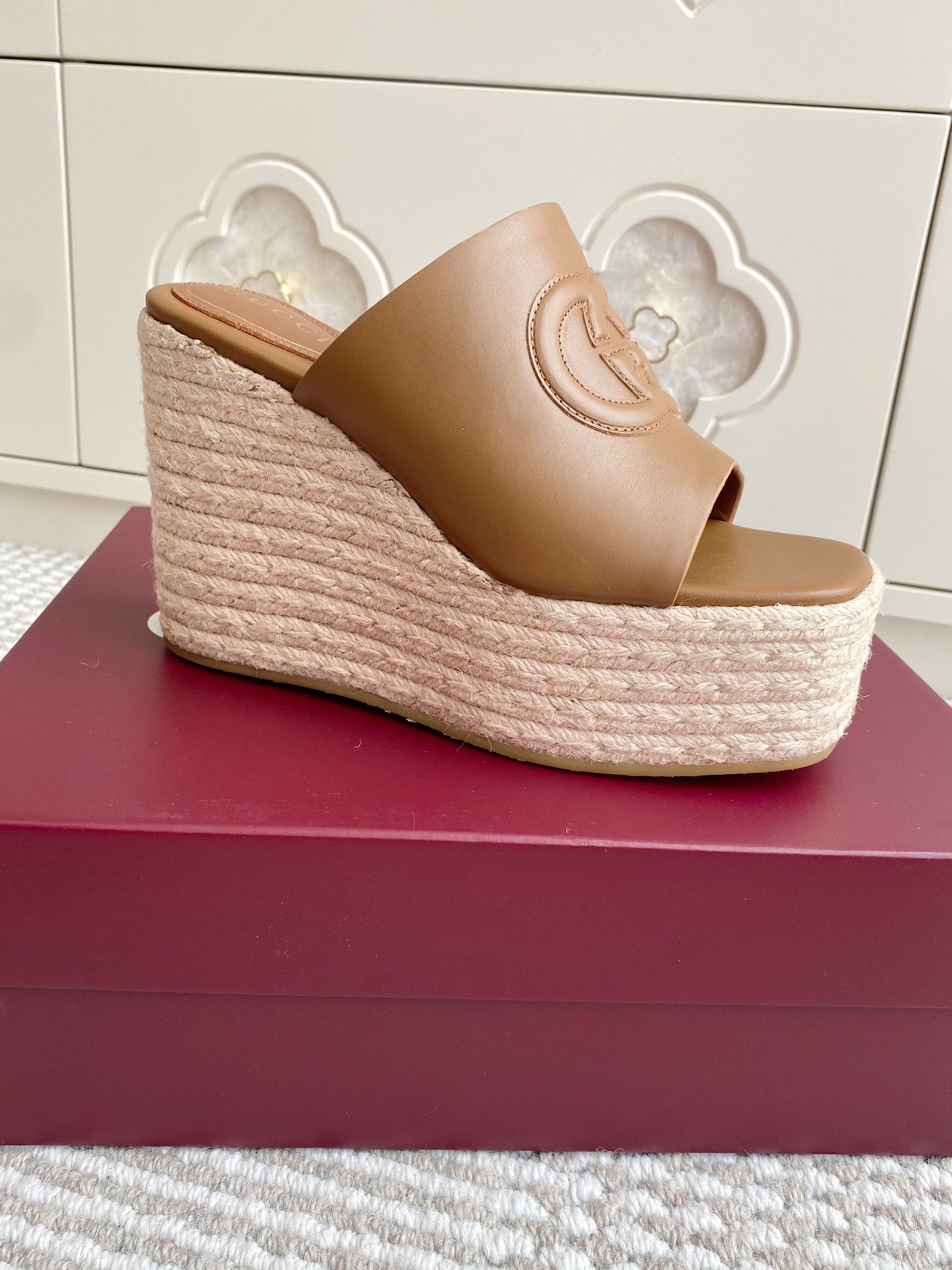 GC 25 Interlocking G Sandal Brown Cord Cowhide 291035