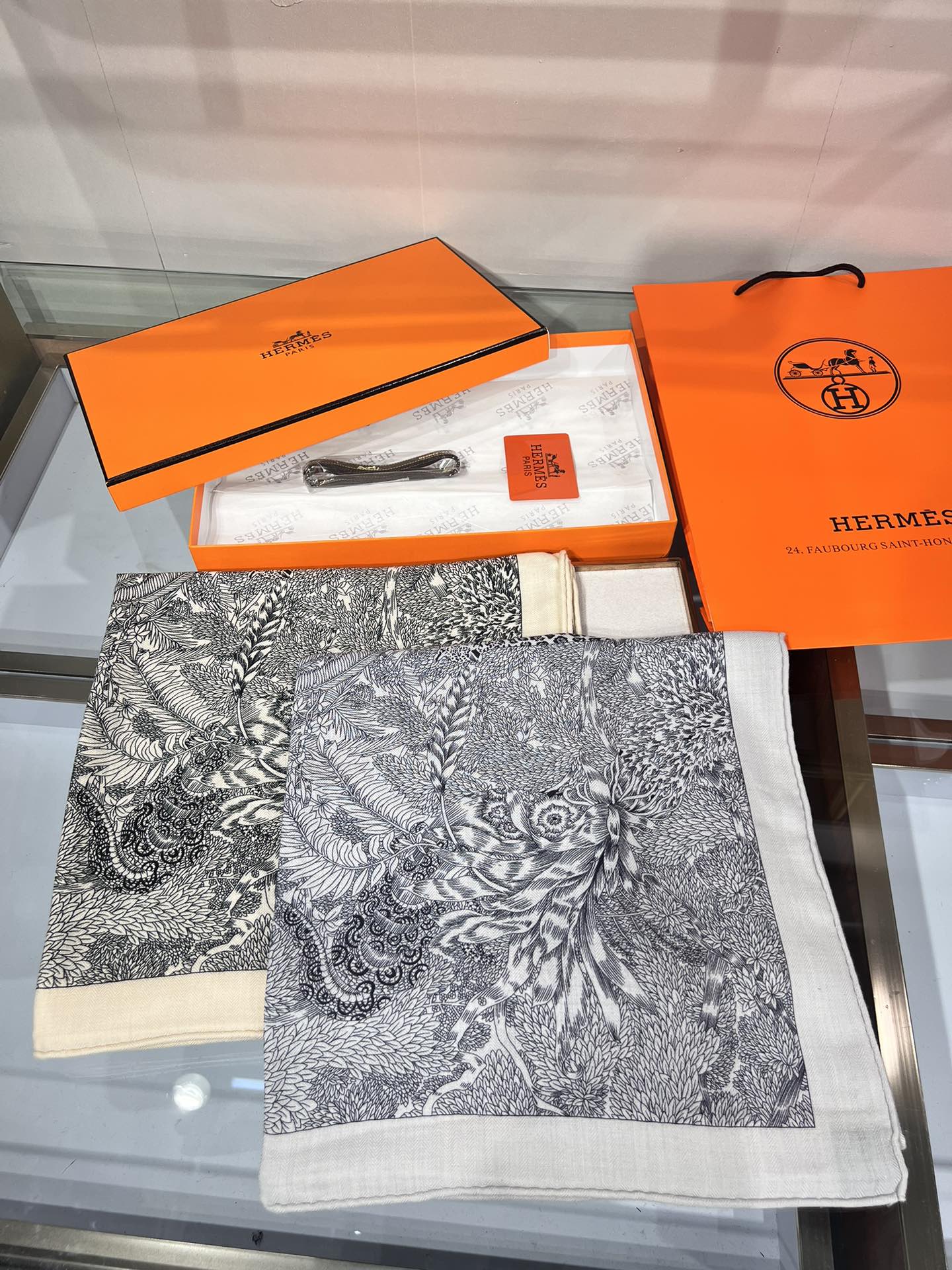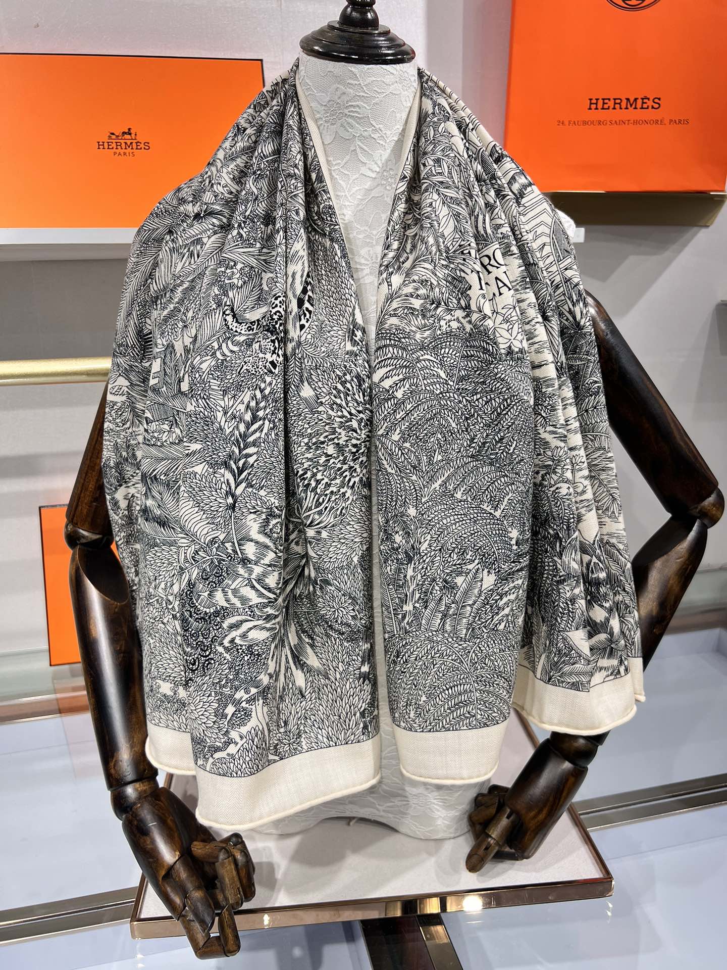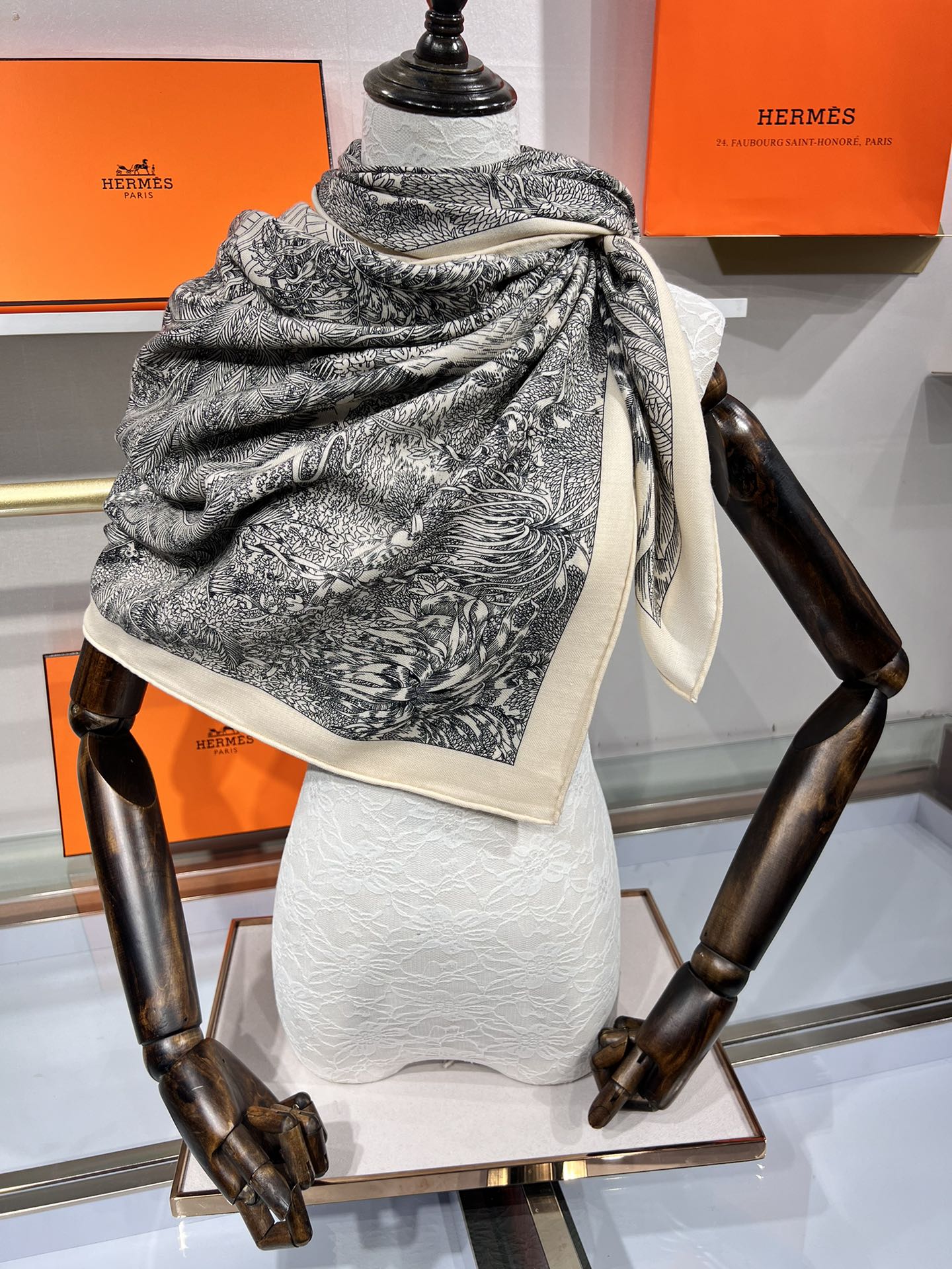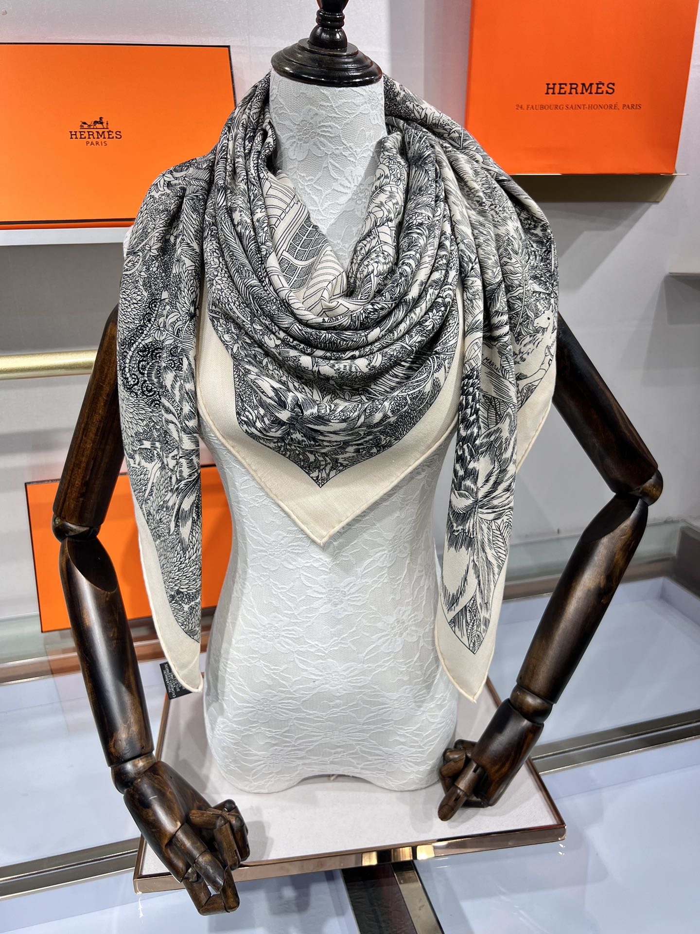 Scarf 135 CM Black White Cashmere And Silk