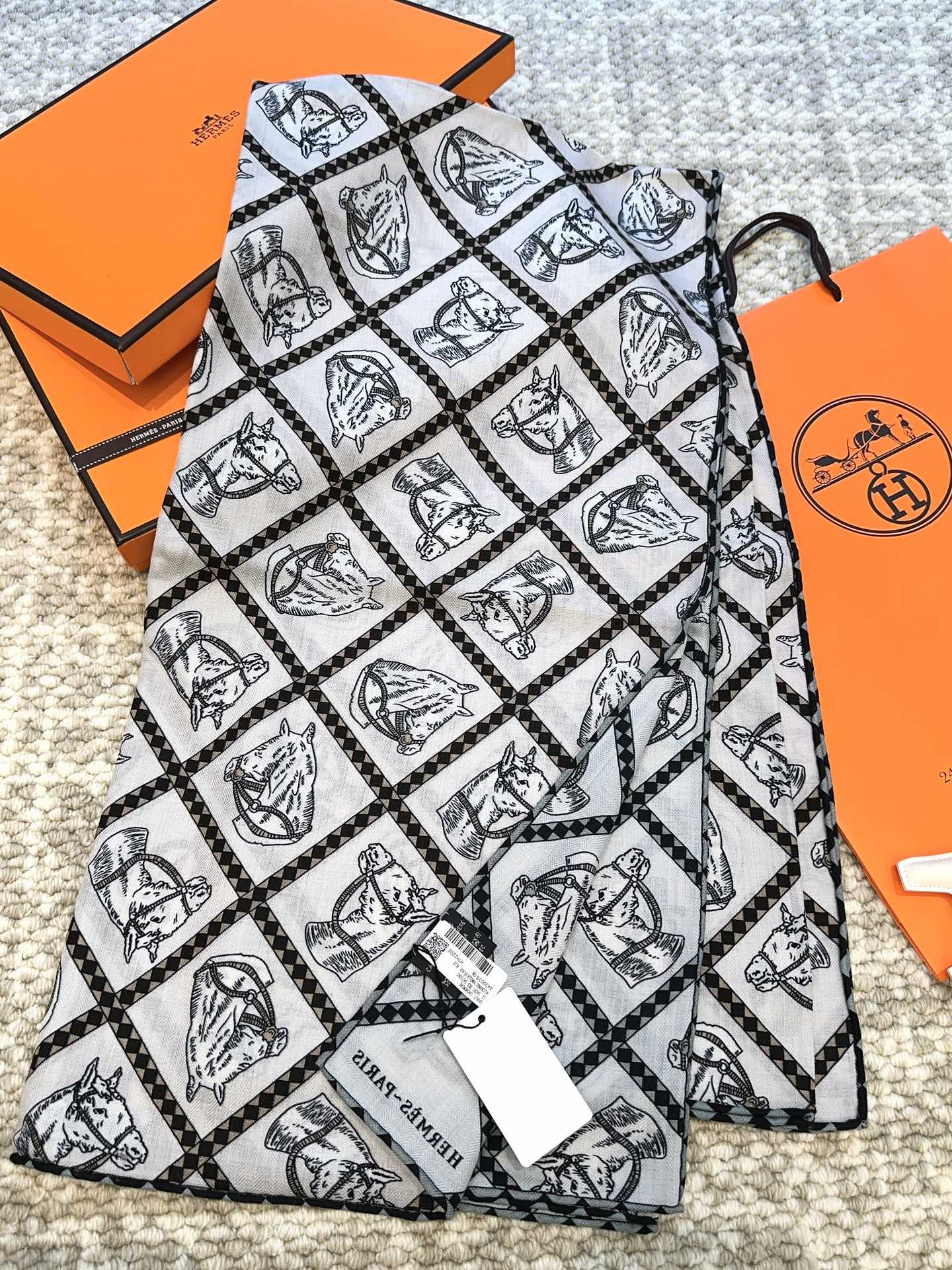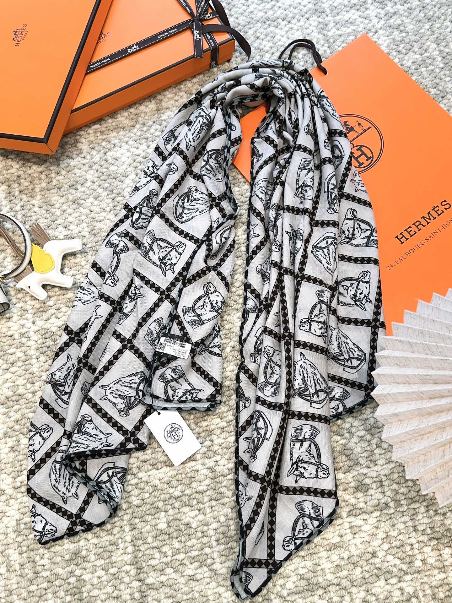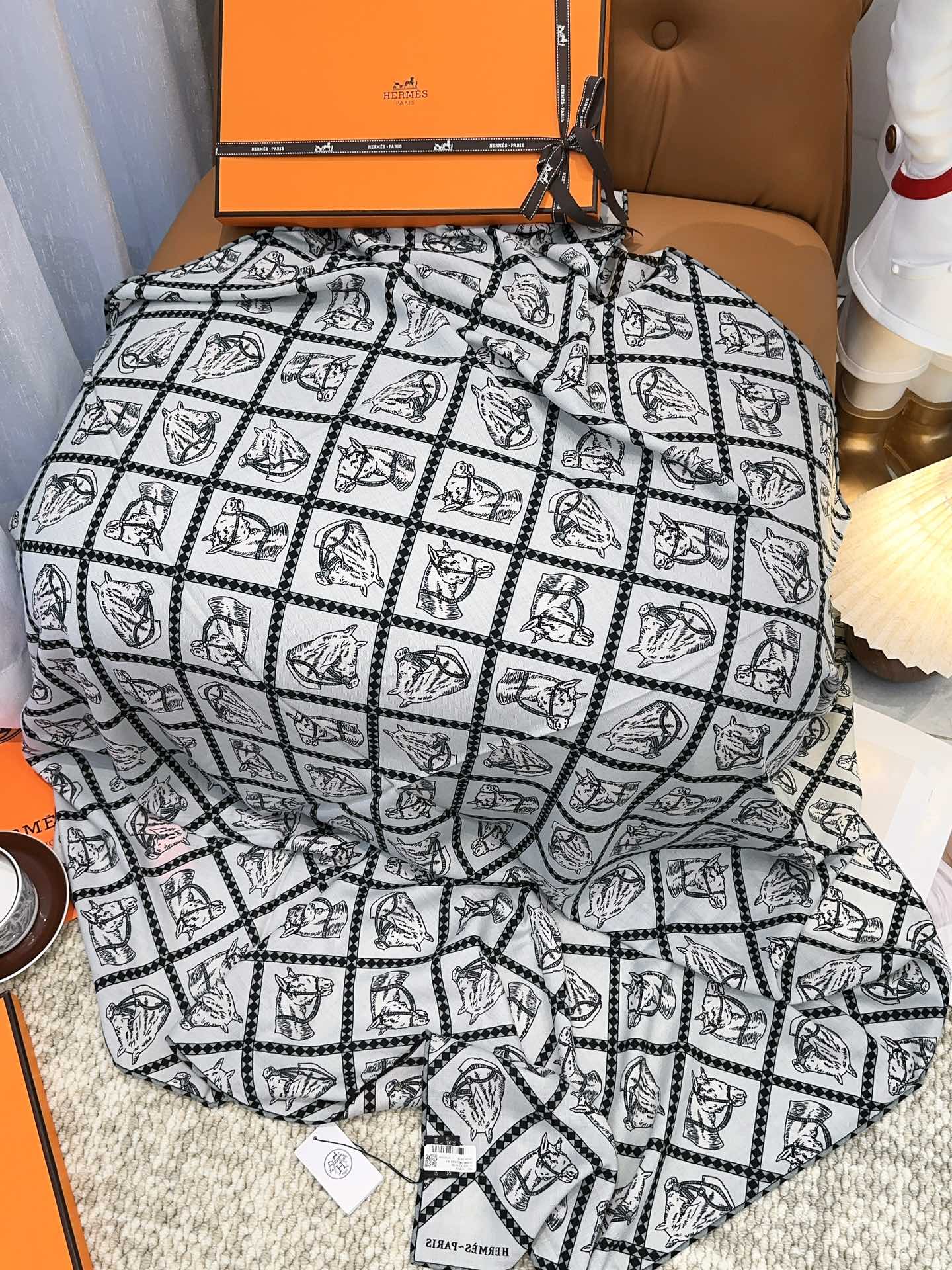 Scarf 140 CM White Black Silk