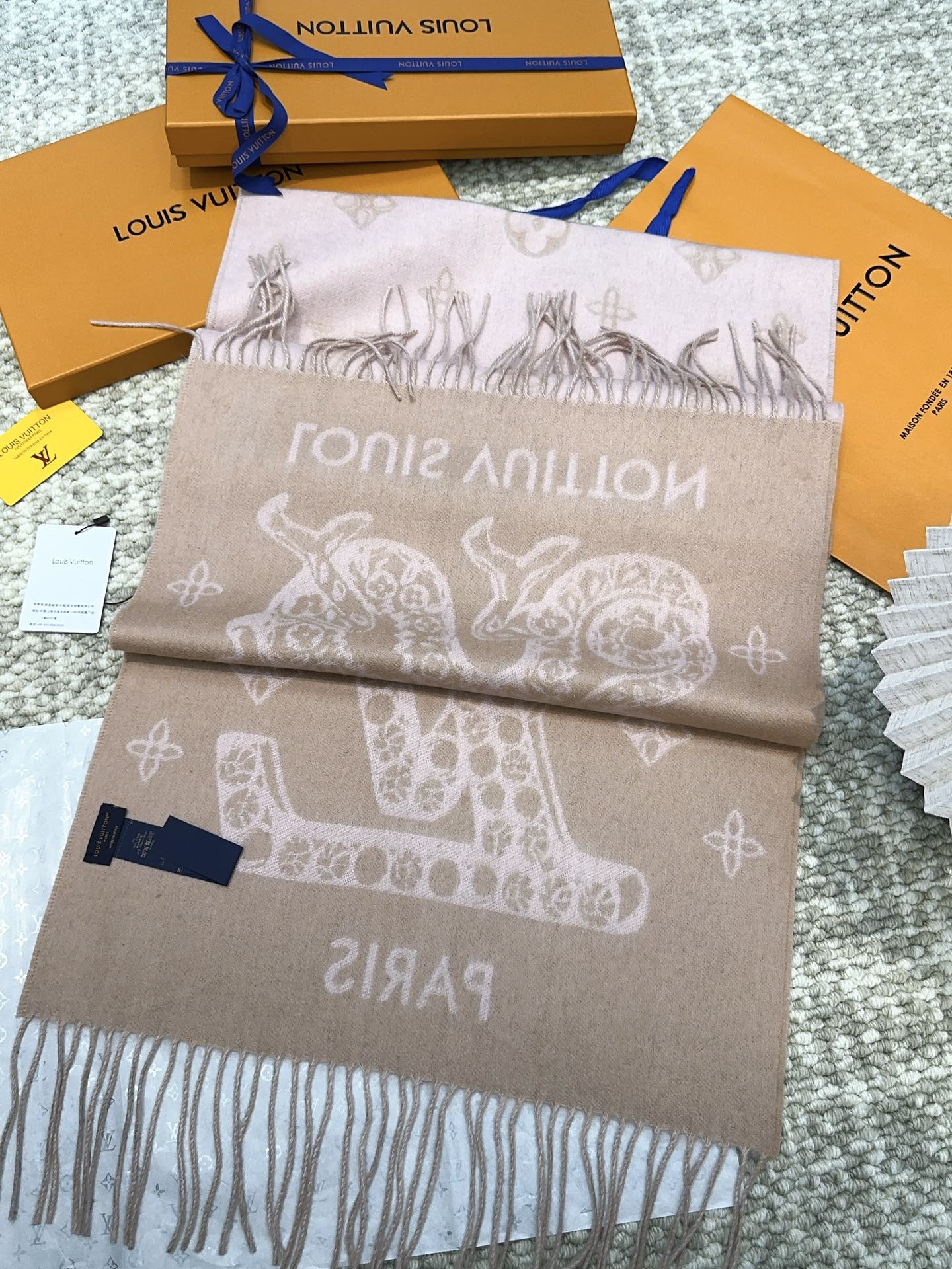 SCARF 170 CM IN LIGHT PINK MONOGRAM CASHMERE 396380