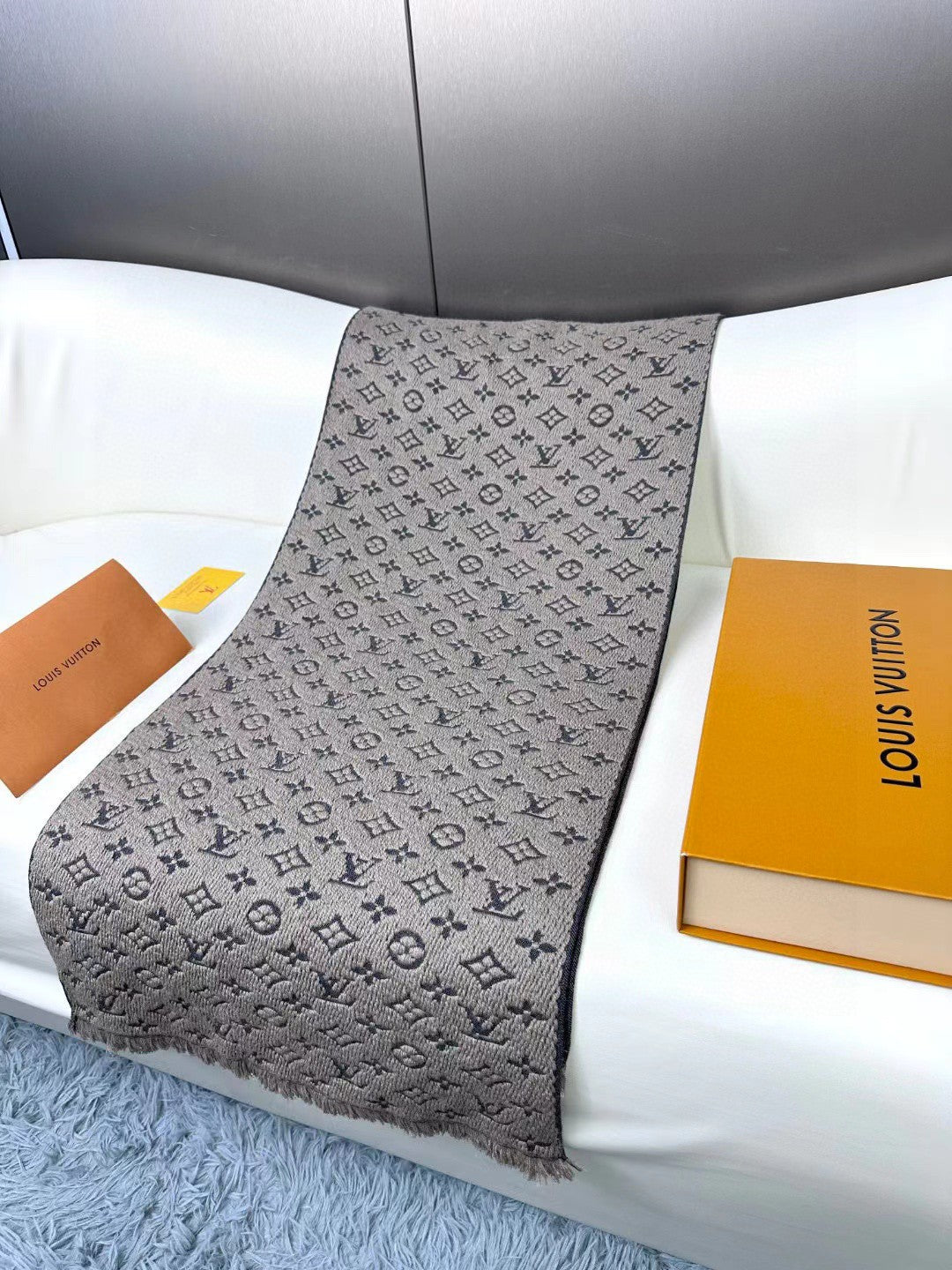 SCARF 180 CM IN KHAKI BROWN CLASSIC MONOGRAM CASHMERE 396440