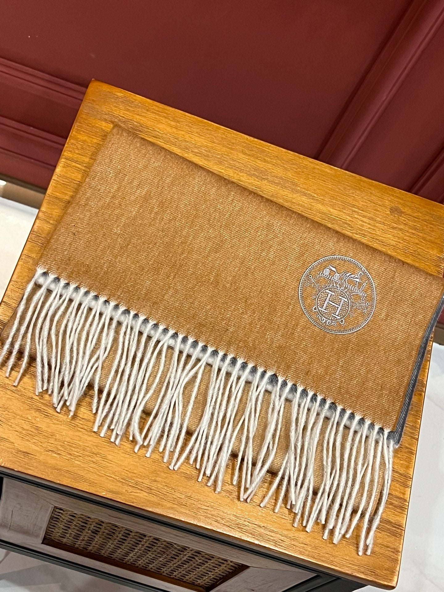 Scarf 190 CM In Dark Beige Mix Grey White Cashmere