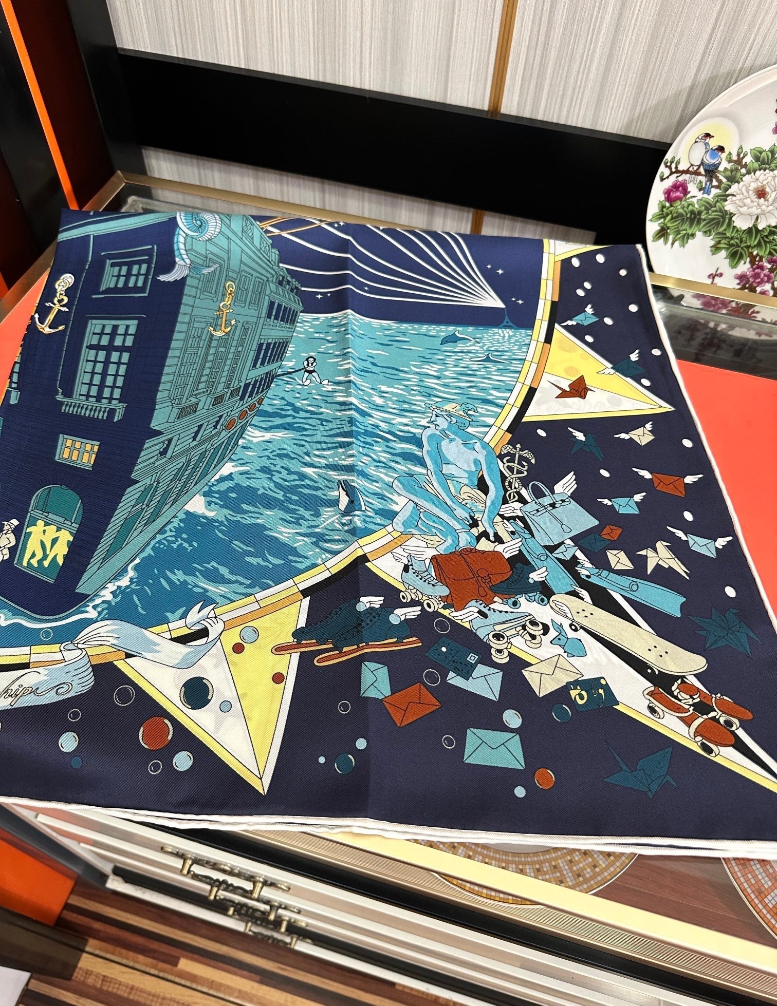 Square Scarf 90 CM Charcoal Blue Colorful Silk