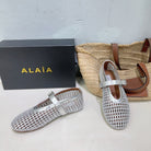Alaia 25 Marry Janes Ballet Flats Silver Wool Sheepskin 300457
