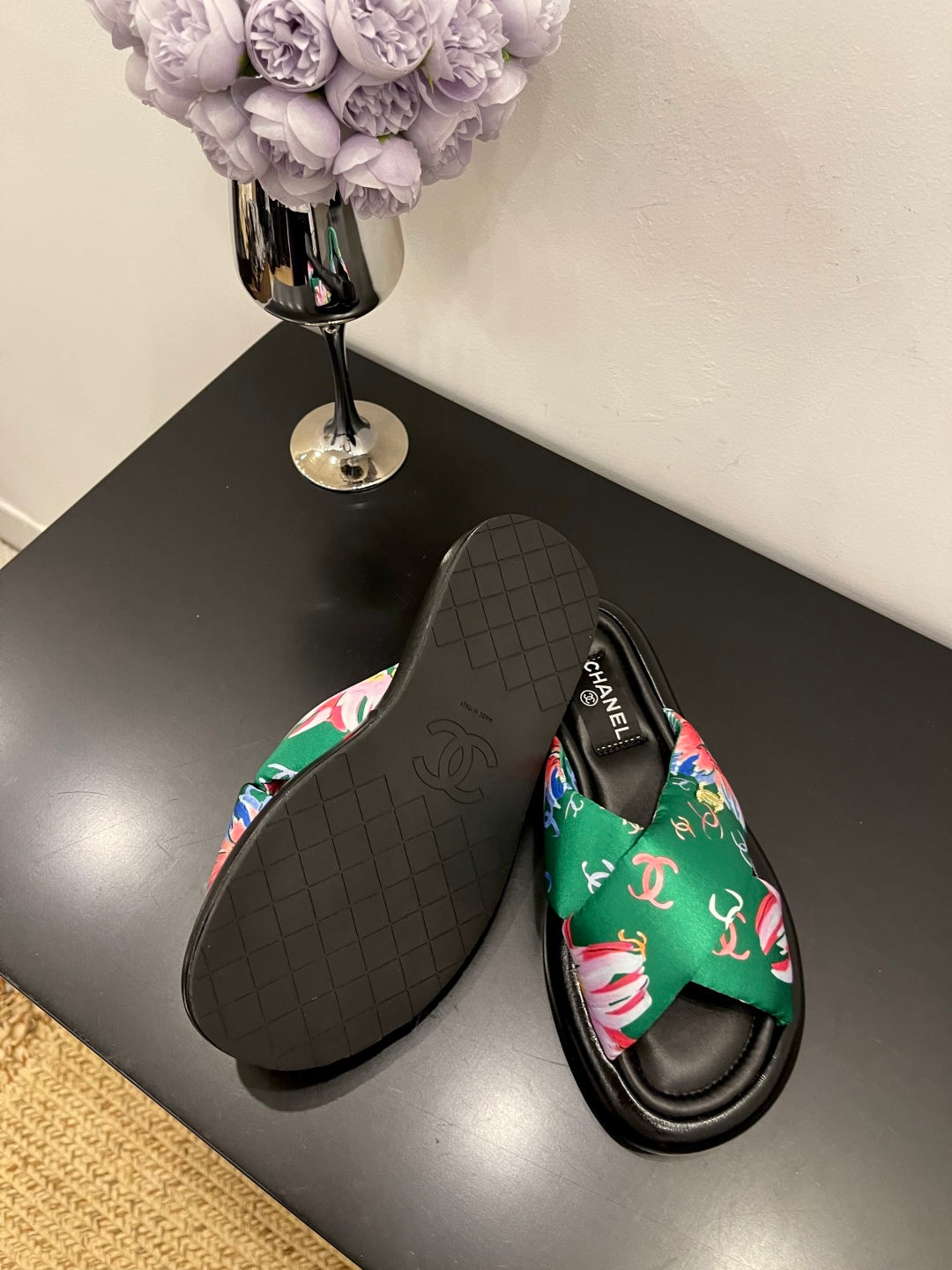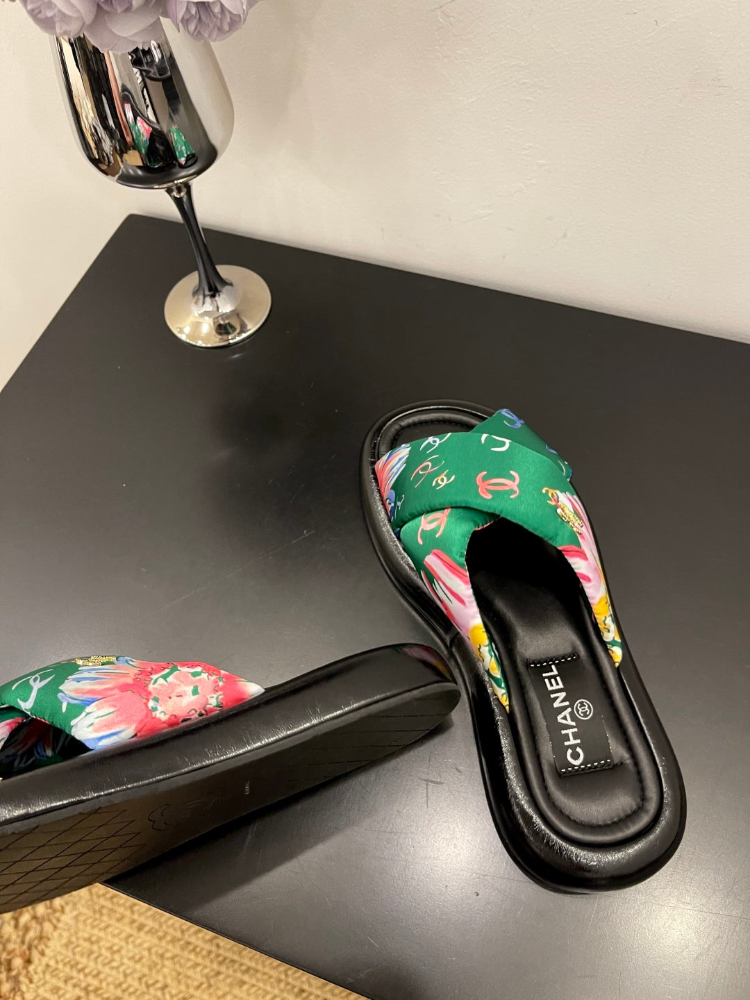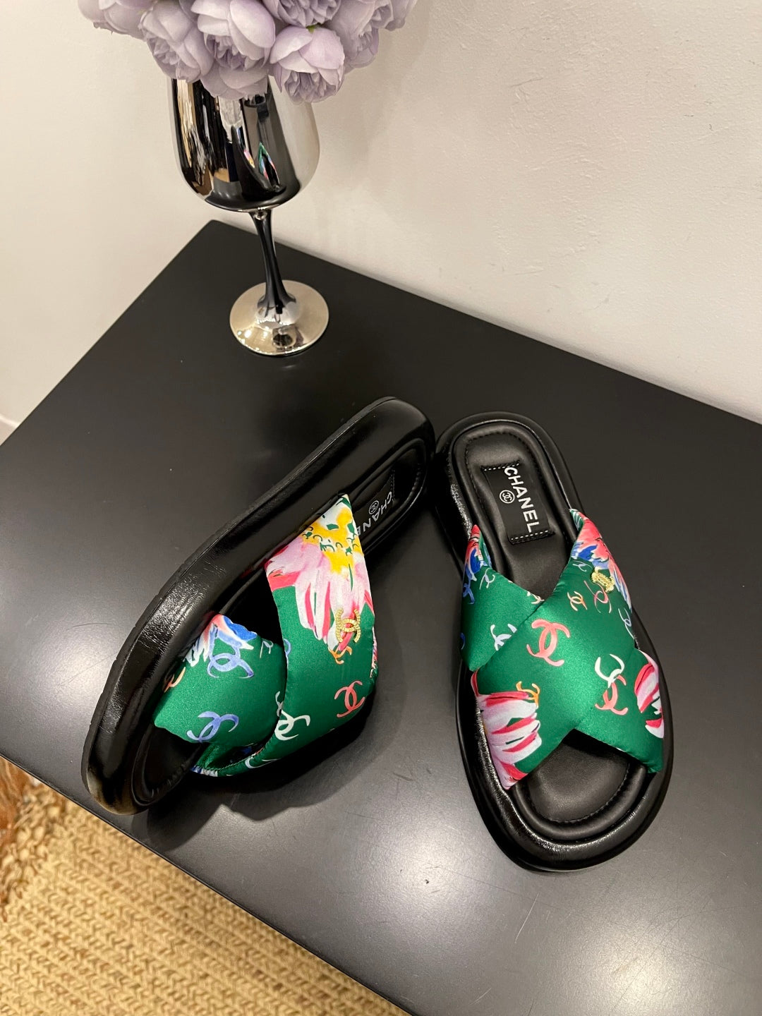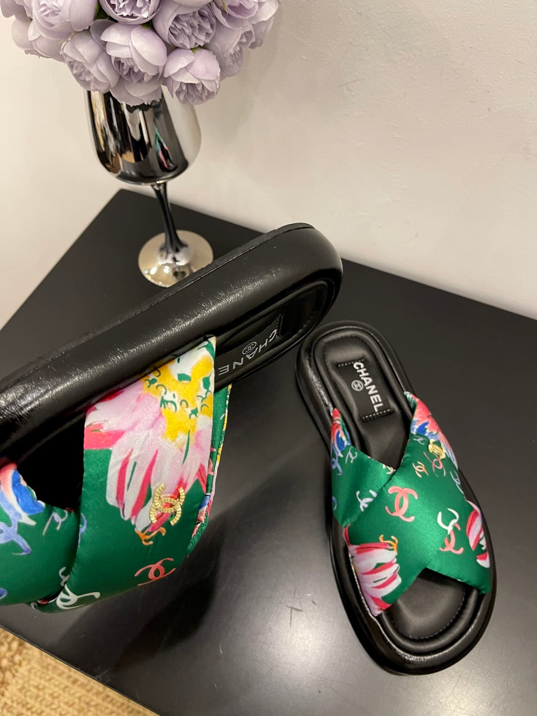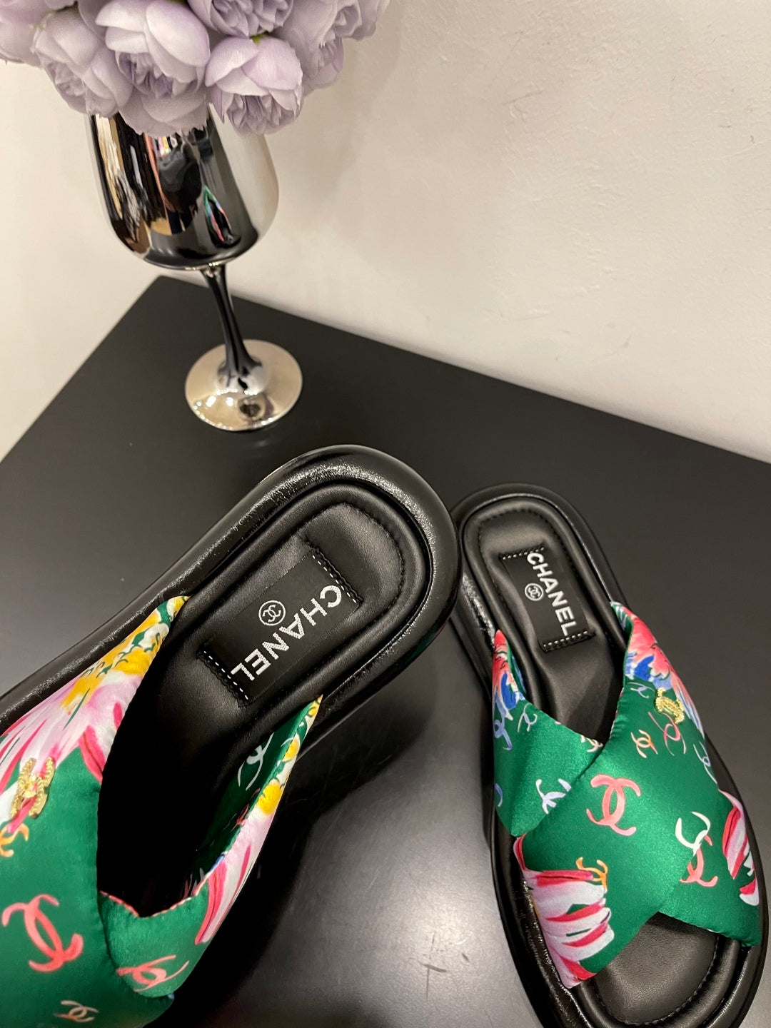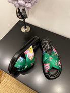 CC 25 Platform Slide Green Cloth Sheepskin 334743