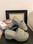 CC 25 Platform Slippers Blue Lambskin 310384