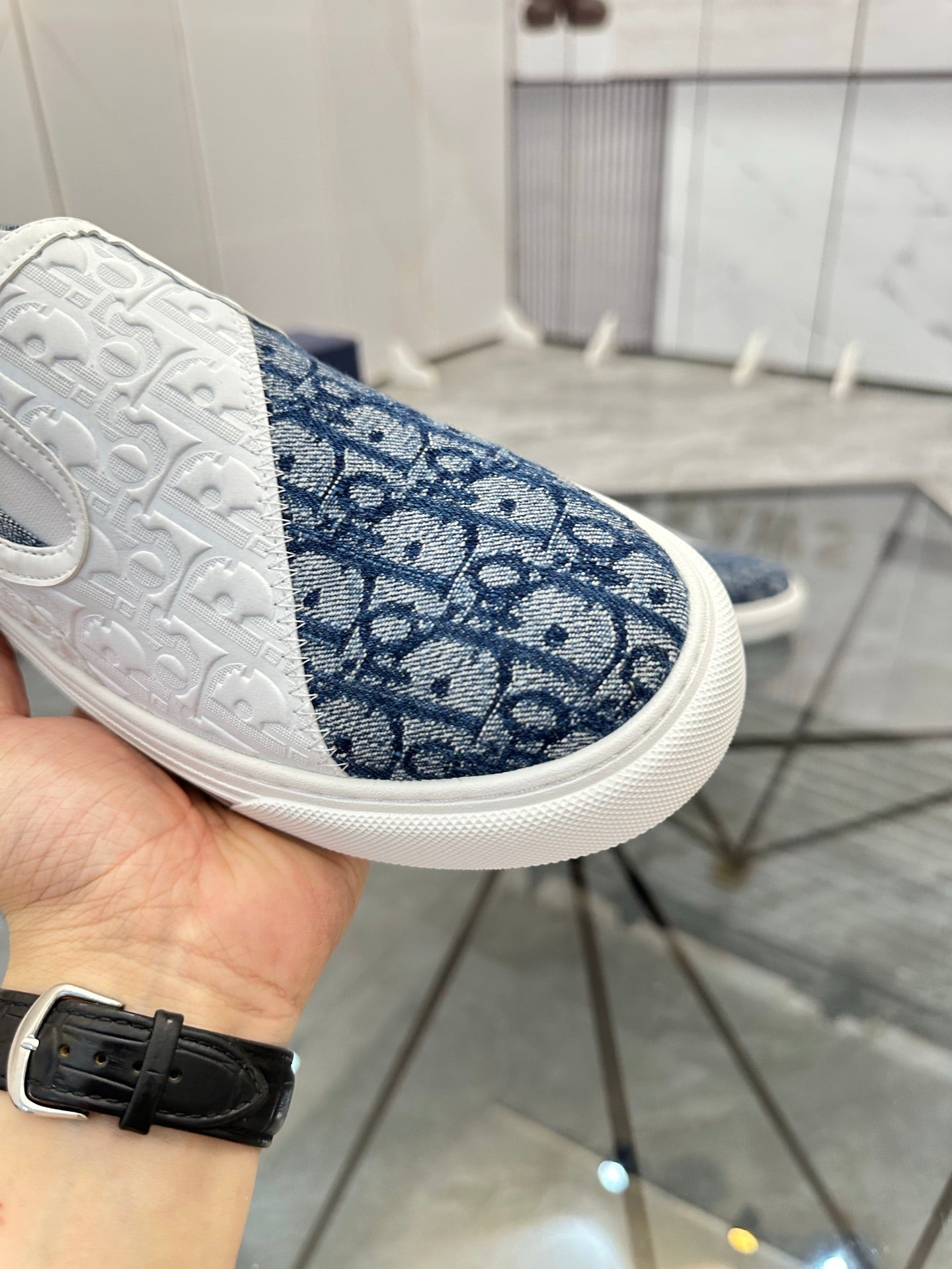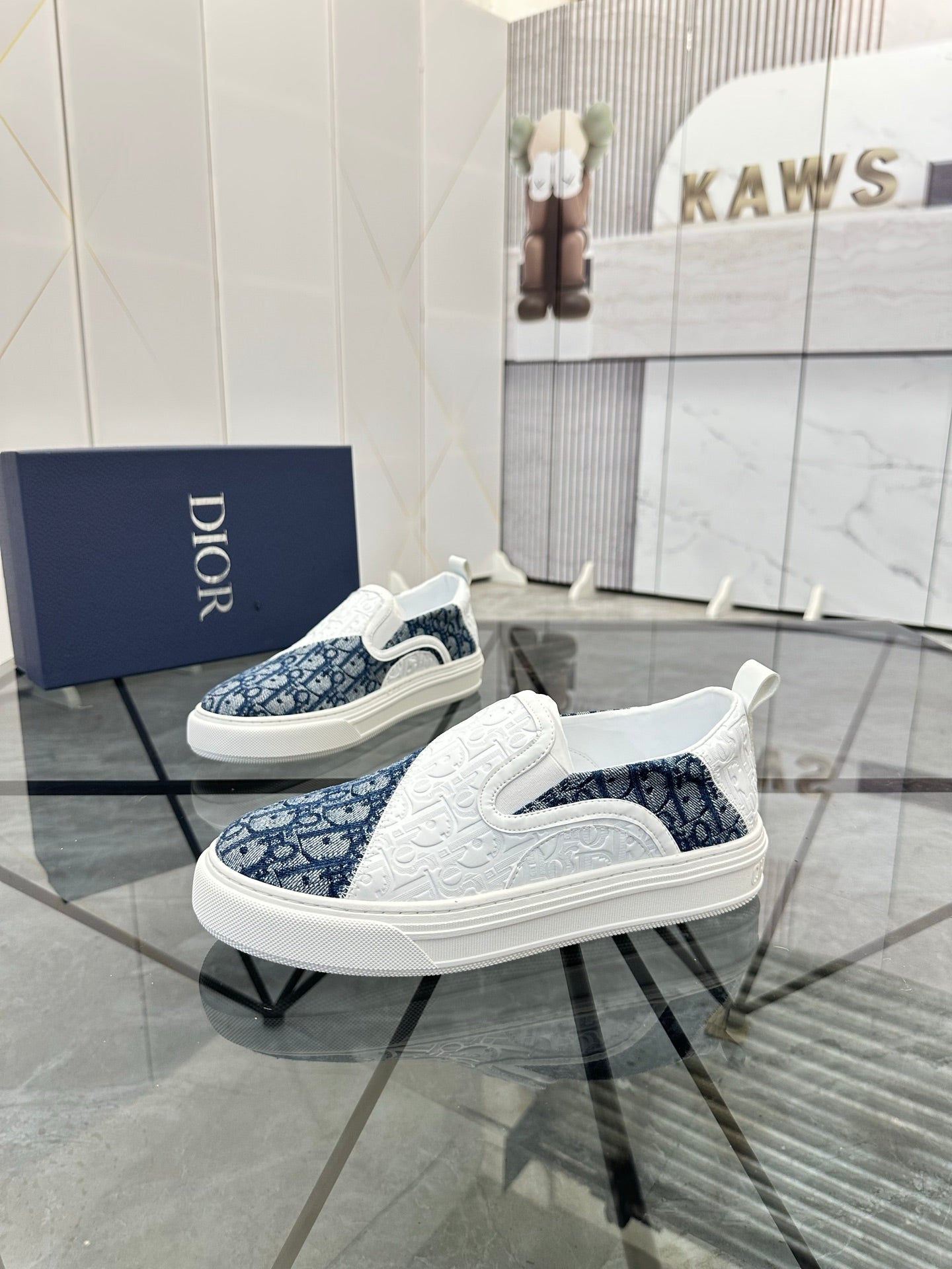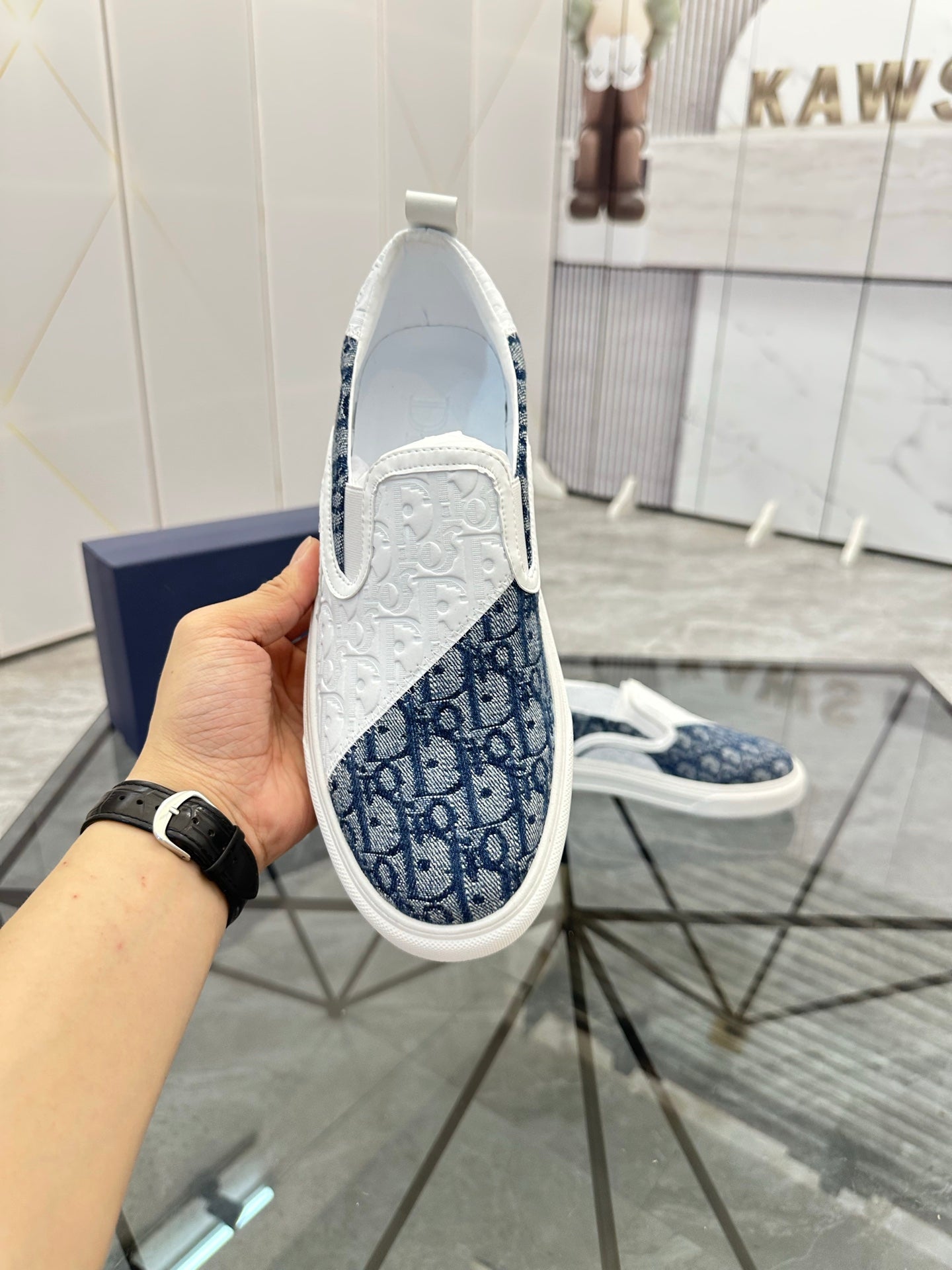 CD Slip on loafer White Blue Cowhide Fabric 647995