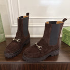 Gucci Horsebit Ankle Boots Dark Brown Black Suede Sheepskin 490527