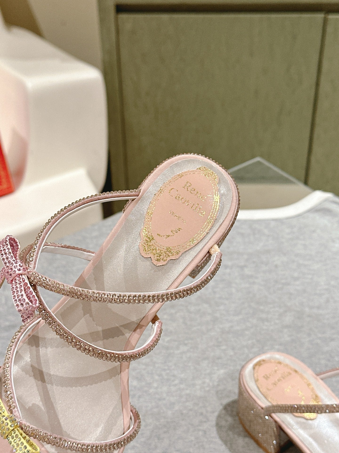 RC 25 Add Bow Diamond Sandals 4.5cm Pink Silk Rhinestones 268073