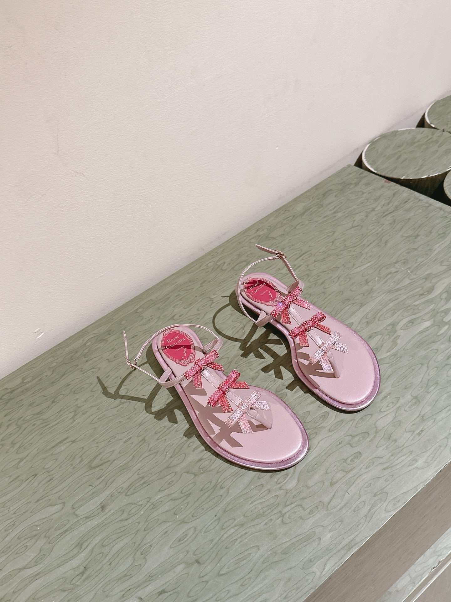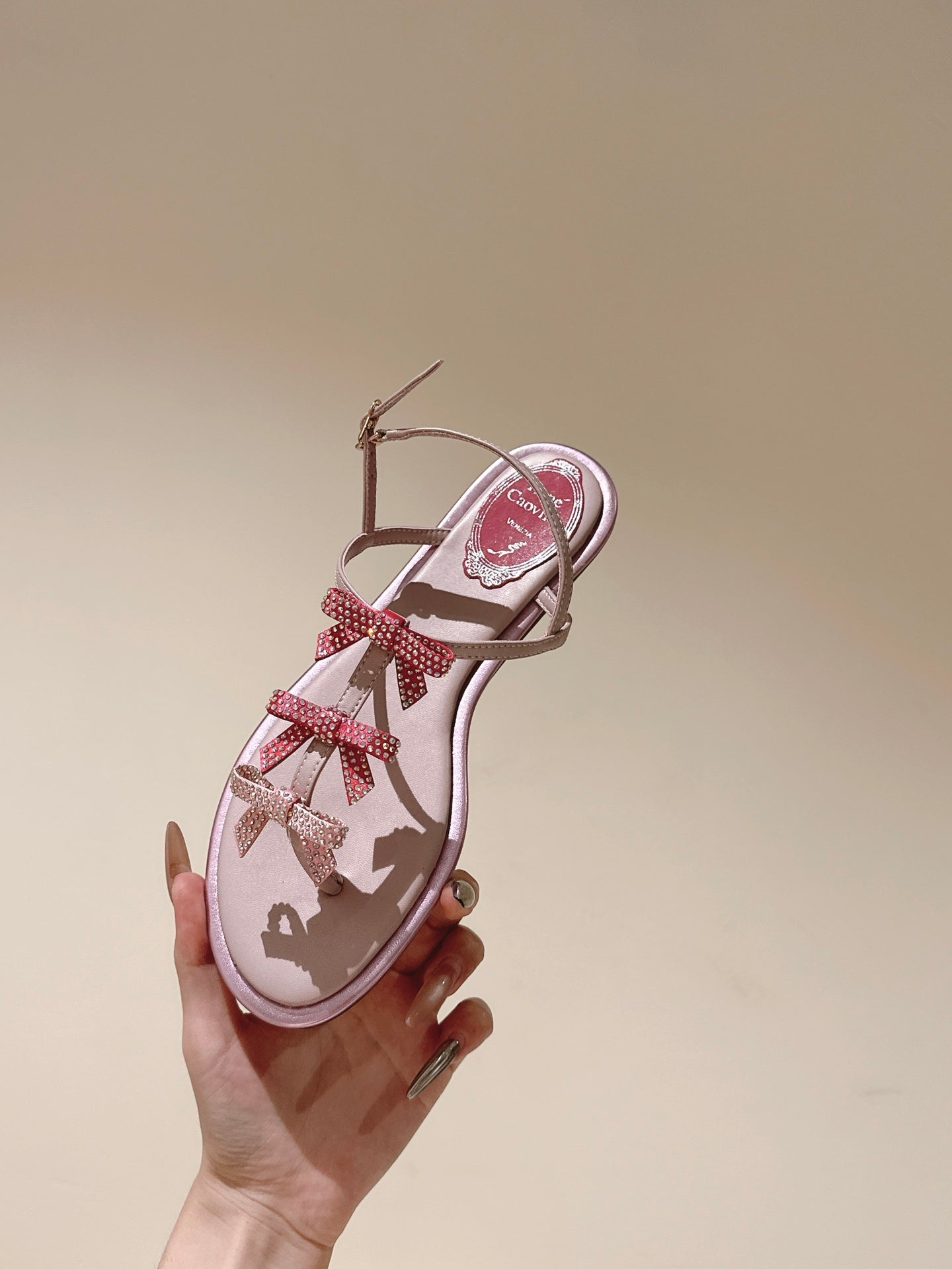 RC 25 Thong Bow Attached Flat Sole Pink Silk Rhinestones 268065