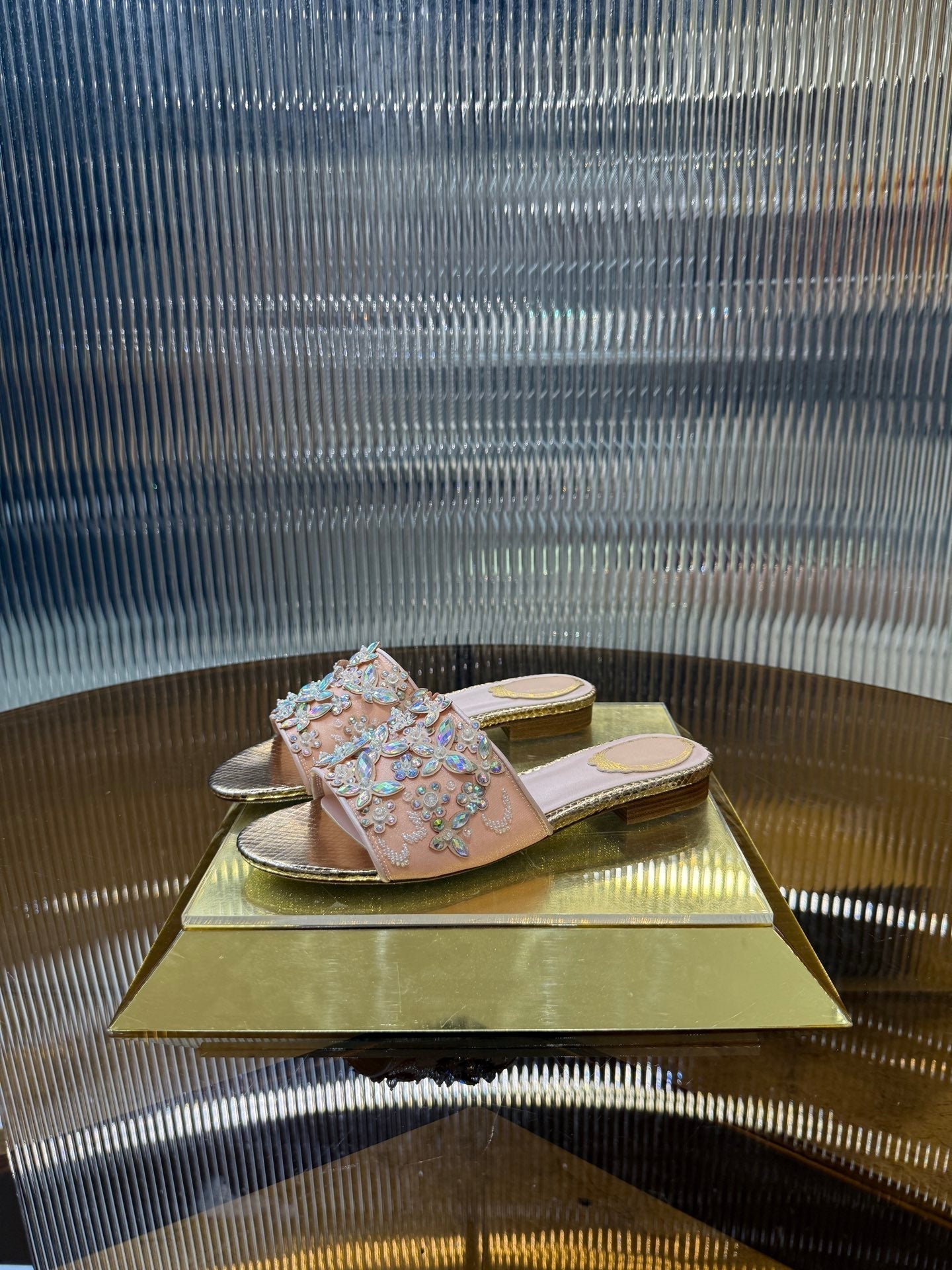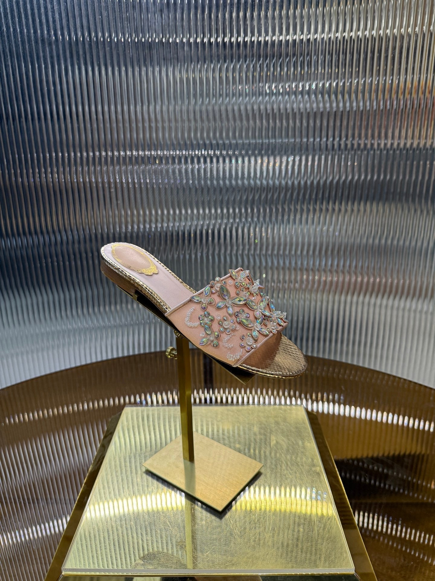 RC 25C Butterfly Flower Sandals Slippers Pink Sheepskin Rhinestone 275771