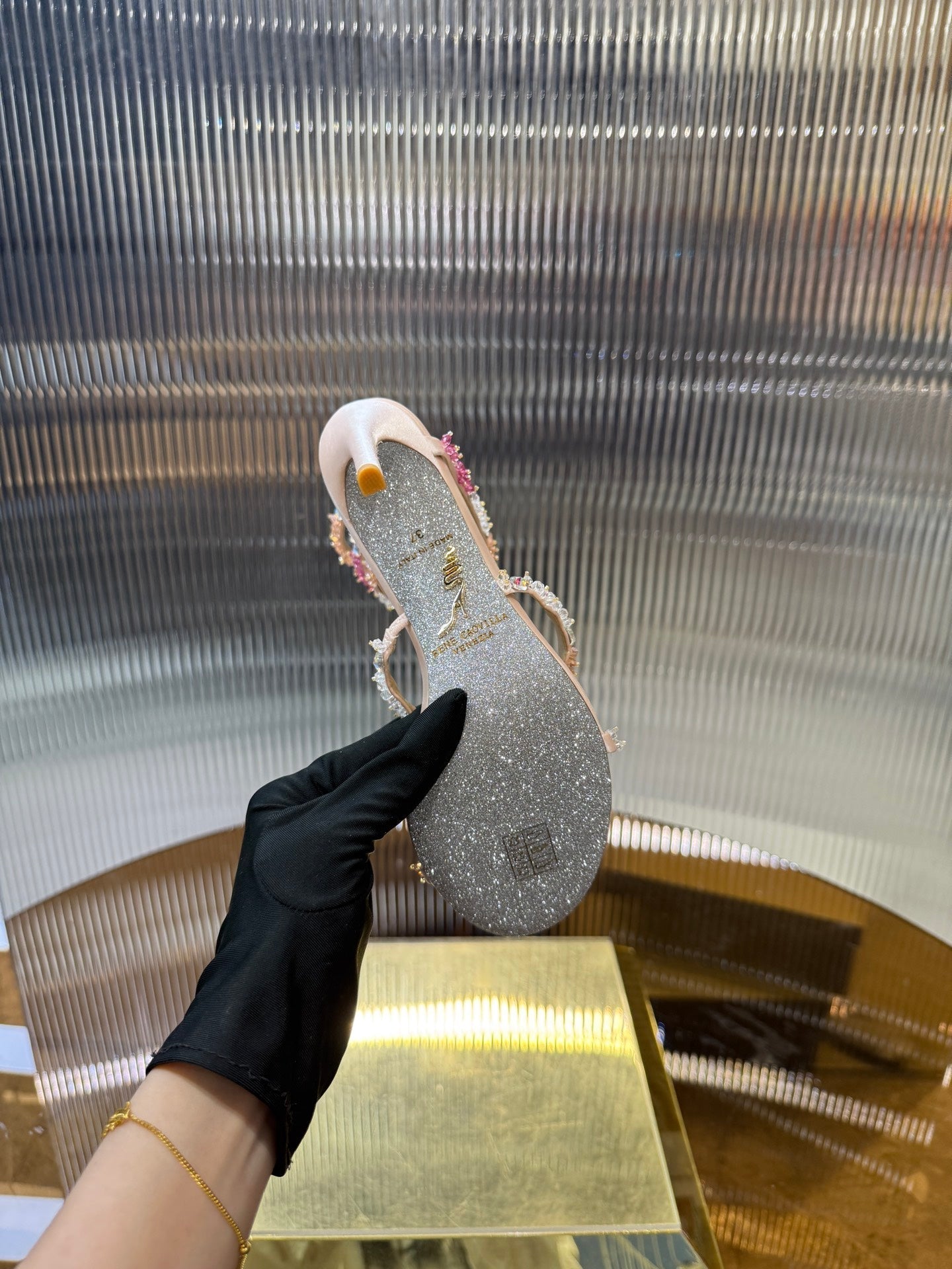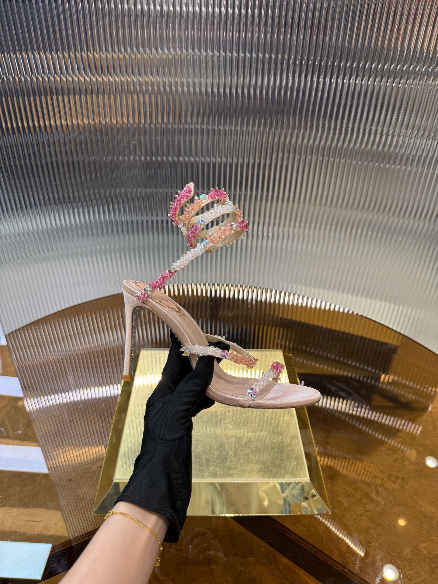 RC 25C Multicolor Diamond Sandals Pink Sheepskin Rhinestone 275781